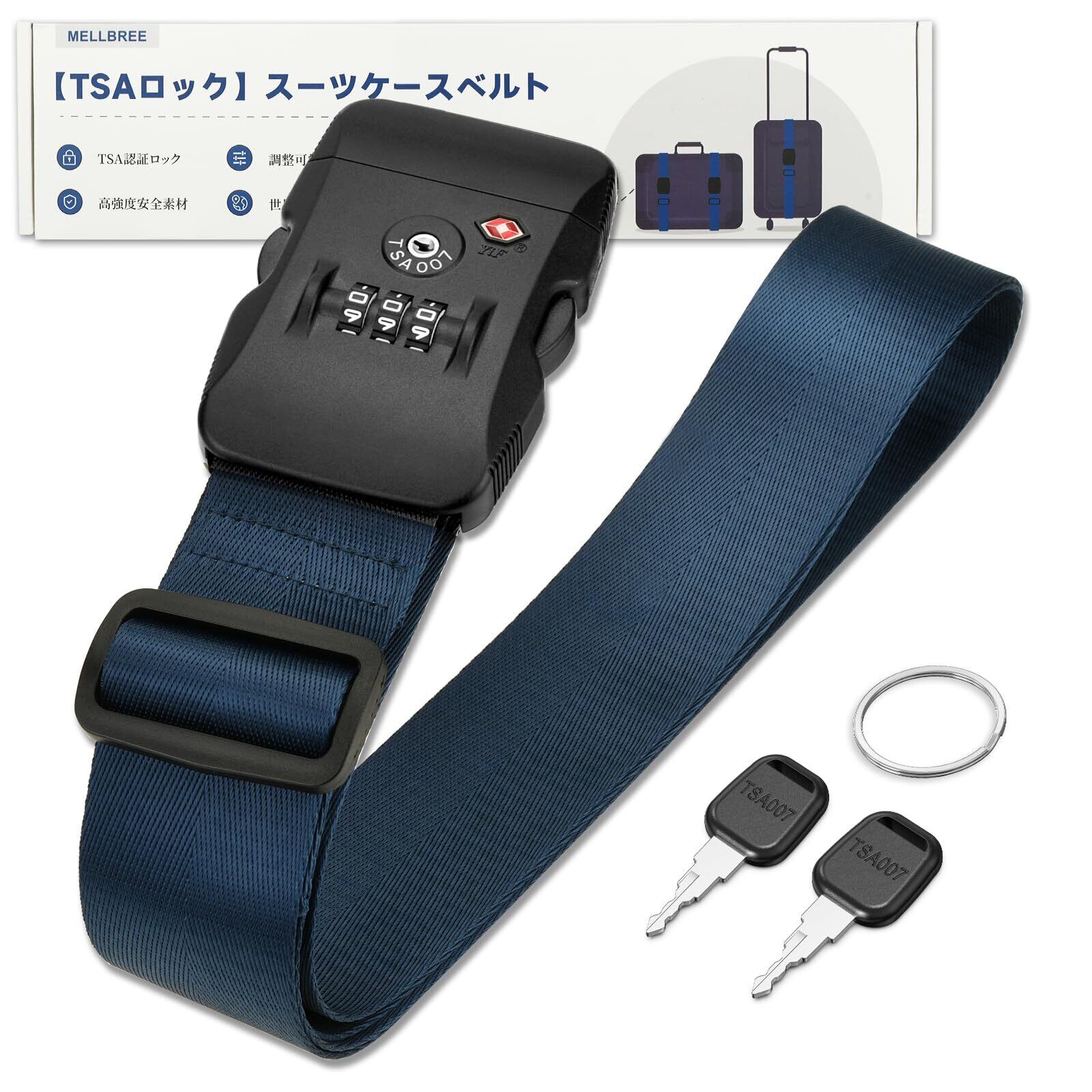 Mellbree 【正規TSA認証】スーツケースベルト TSAロック TSA鍵付き 高級ポリエステル素材 軽量 盗難・紛失・荷崩れ防止 スーツケース用 長さ調節可能 海外旅行 便利グッズ 出張 (ネービー)
