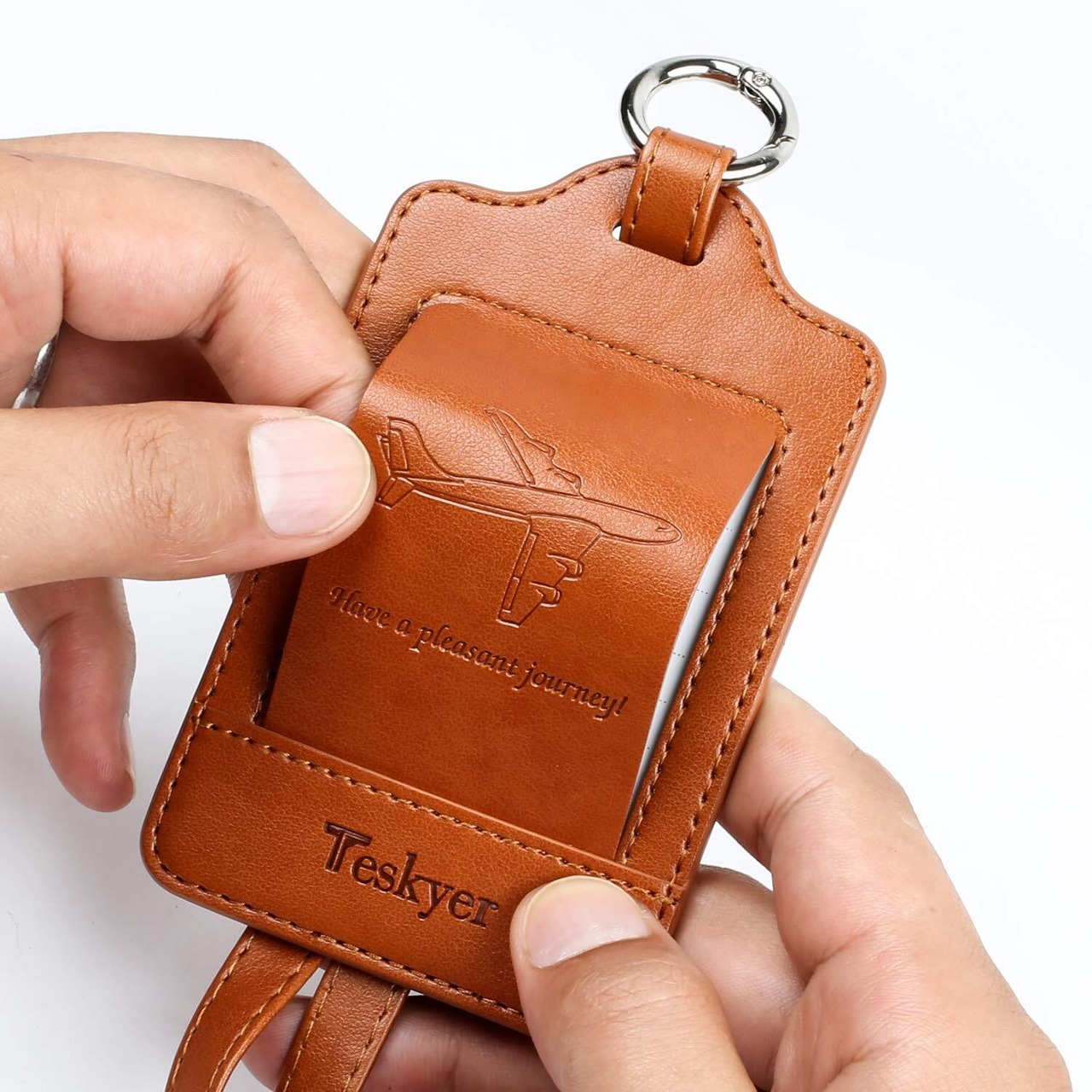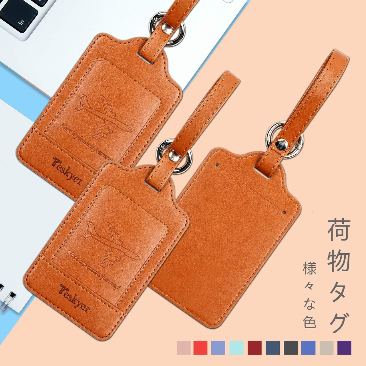 【在庫限り】Teskyer 荷物タグ スーツケース 出張用タグ 番号札 バッグ用ネームタグ レザー トラベル用 旅行手荷物 ラベル 紛失防止 三枚入り(ブラウン)