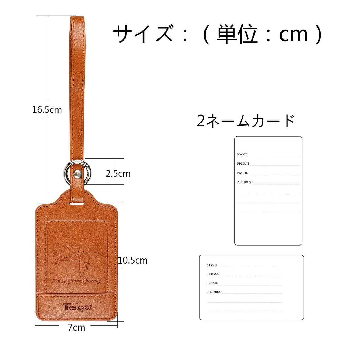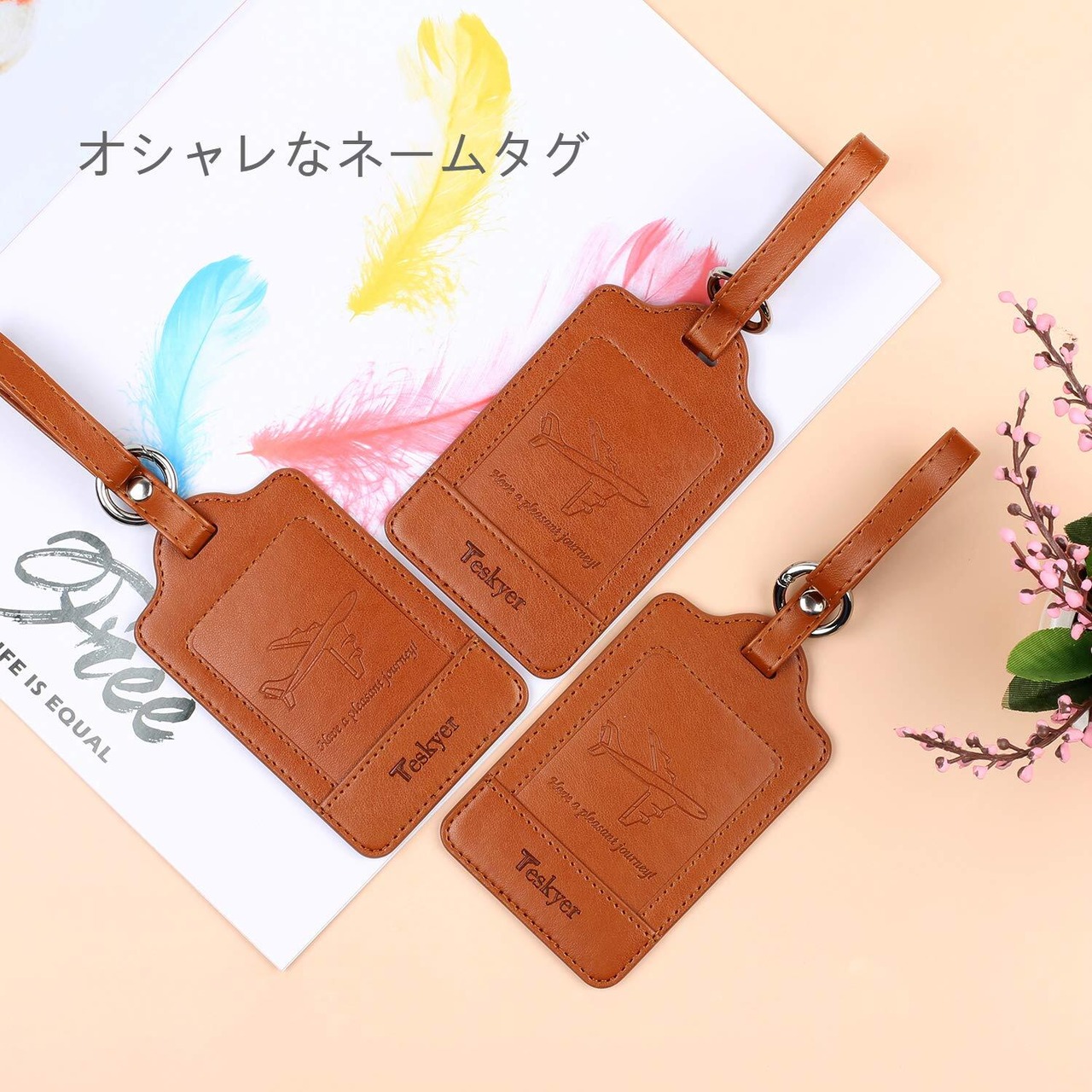 Teskyer 荷物タグ スーツケース 出張用タグ 番号札 バッグ用ネームタグ レザー トラベル用 旅行手荷物 ラベル 紛失防止 三枚入り(ブラウン)