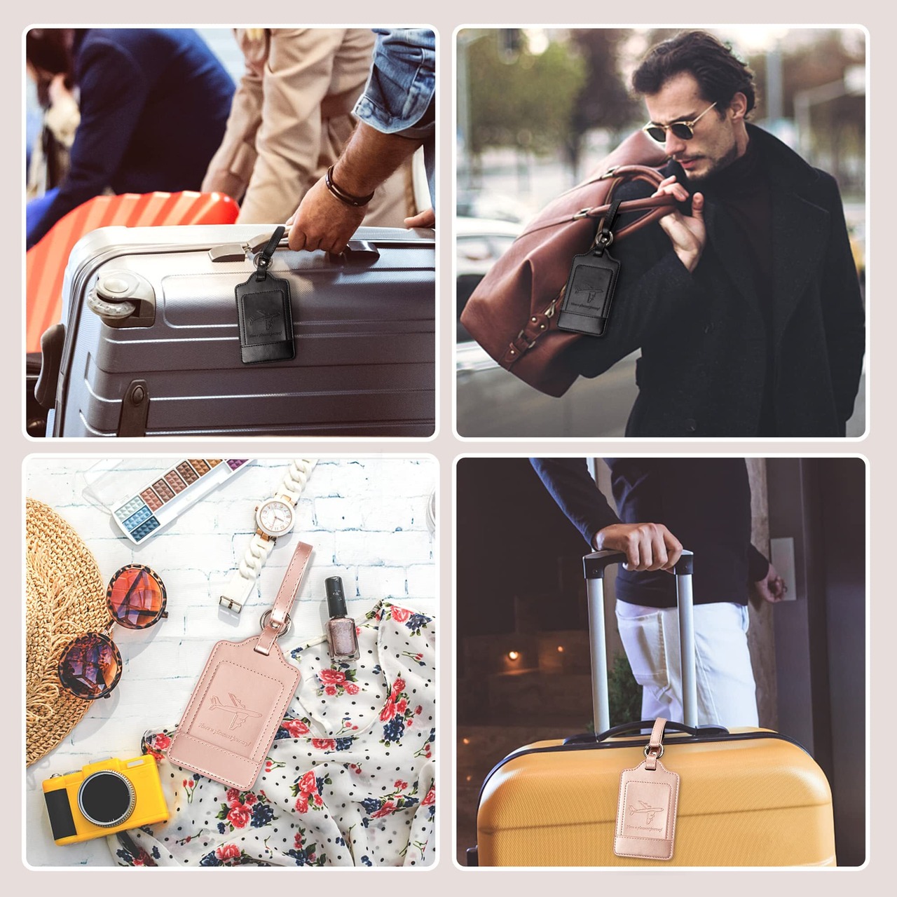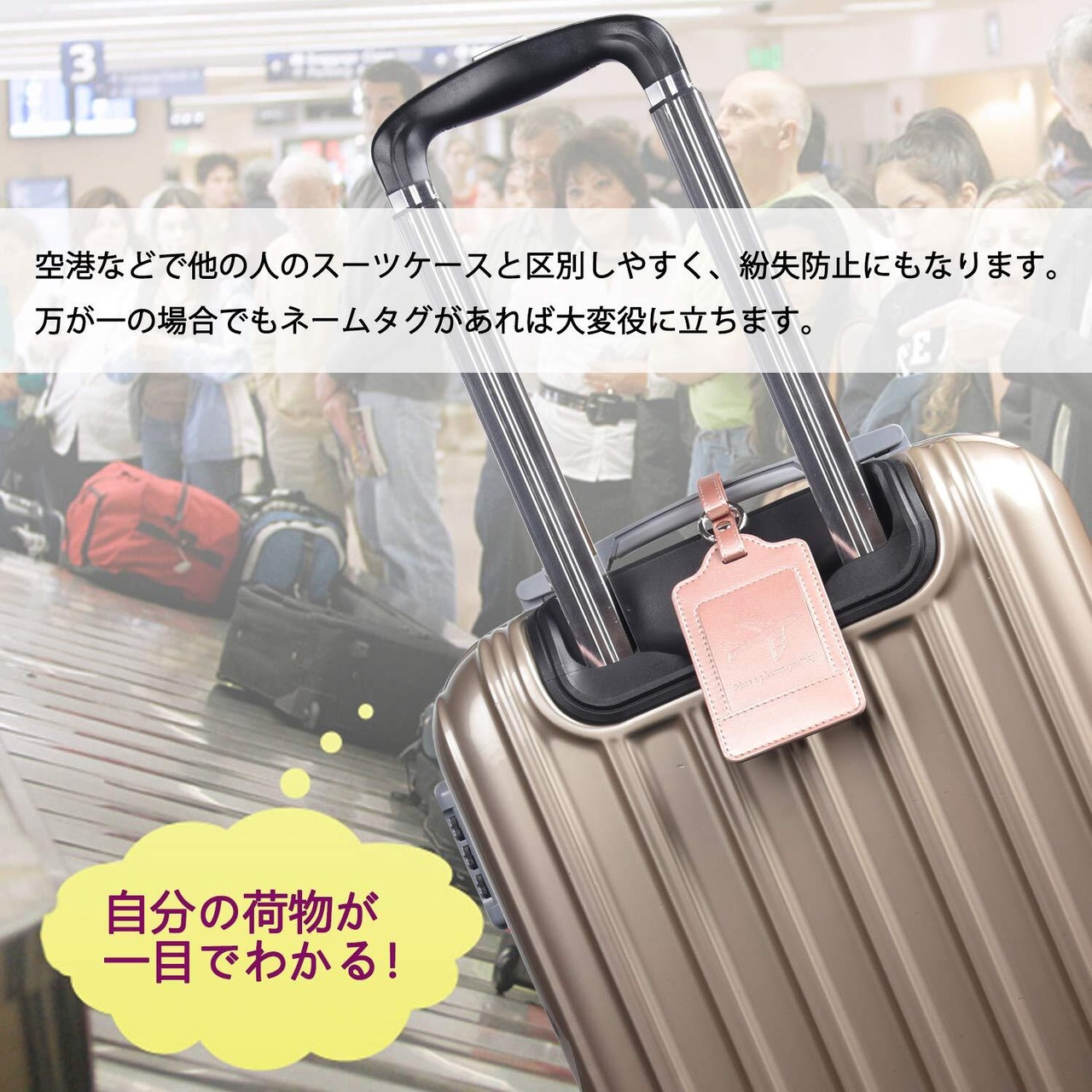 【2025最新】[2枚セット] 荷物タグ ネームタグ - スーツケースタグ 紛失対策 名前ラベル IDカード用 社員証 レザー バッグ用ネームタグ ビジネス 防塵 番号札 出張用 旅行 軽量 Migeec (ブラック+ローズゴールド, 2枚セット)