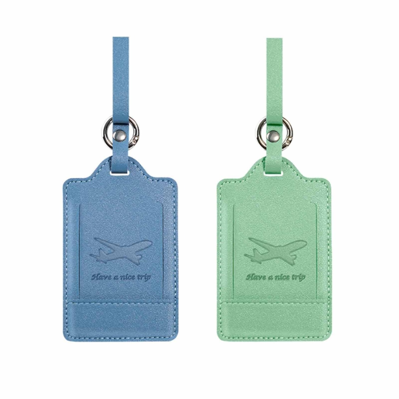 YUWENW スーツケース 荷物タグ 2個セット ネームタグ スーツケース名札 ラゲッジタグ 番号札 ネームラベル 名前タグ 社員証 防塵 レザー 軽量 ラゲージタグ カバン装飾 ネームタグ 旅行小物 旅行用品 出張対応用 IDカード用 ラベル用 (緑+ライトブルー)