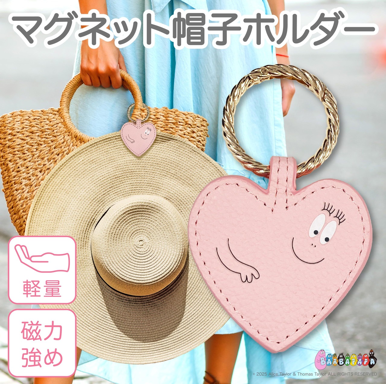 バーバパパのマグネット帽子ホルダーは、お気に入りの帽子を簡単に掛けられるアイテムです。 ピンクのハートの形が愛らしく、黄色い輪っかでしっかりと掛けられます。 軽量で持ち運びも簡単なので、お出かけ先でも活躍します。