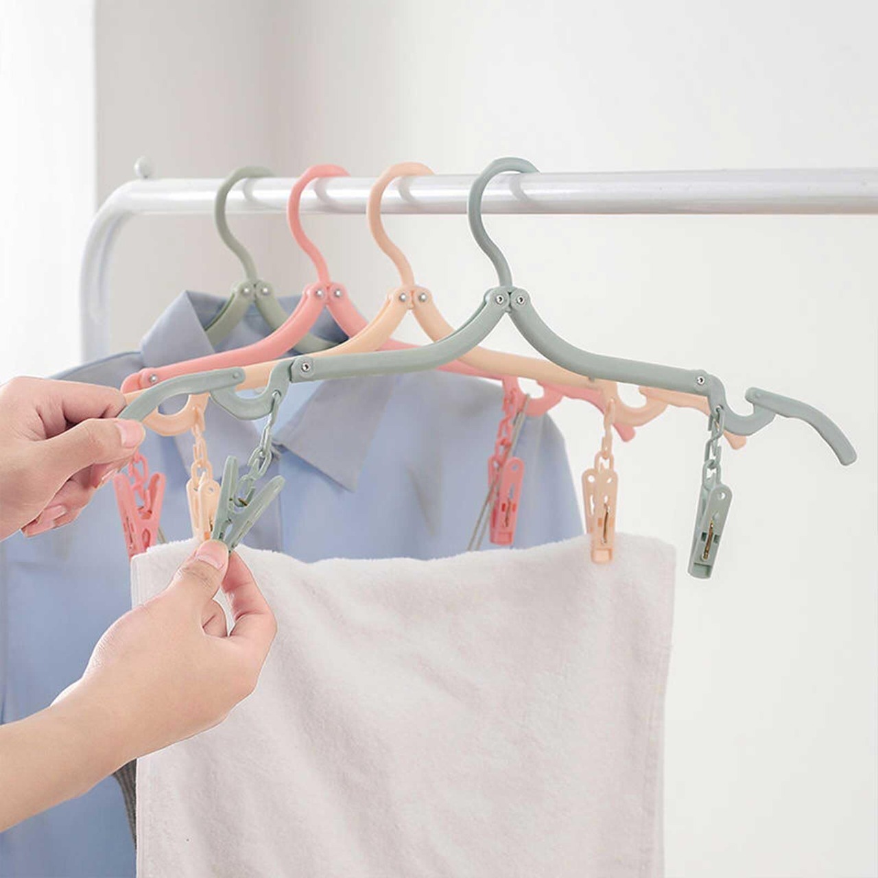 FUYUERO【2025旅行の新傾向,コンパクトな4way折りたたみハンガー】 携帯ハンガー 折りたたみ 折り畳み式 携帯用 洗濯ばさみ付き トラベル用品 洗濯物干し 旅行用 ピンチ 海外旅行 出張 商務 アウトドアなど 便利グッズ (4色4パック)