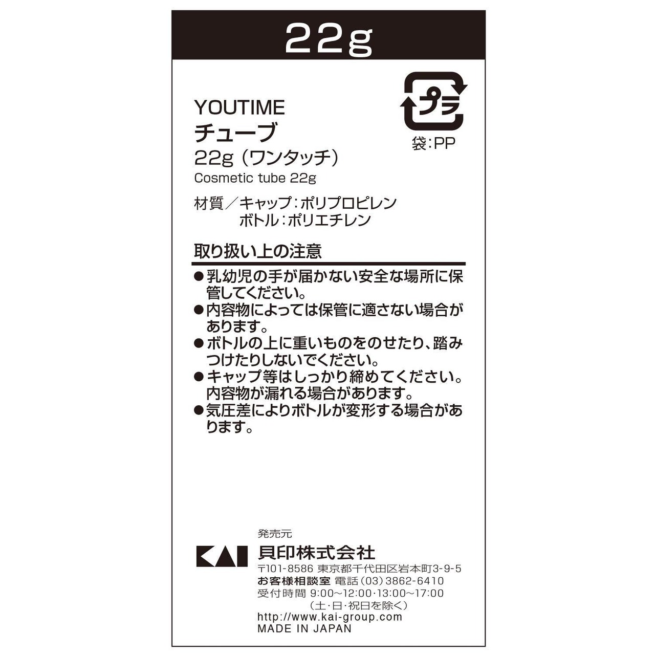 【人気商品】貝印 チューブ 22g(ワンタッチ) ボトル 化粧ボトル ぼとる 透明 容器 チューブ ちゅーぶ 旅行 トラベル YOU TIME (シャンプー・リンス等の使用に) 1個