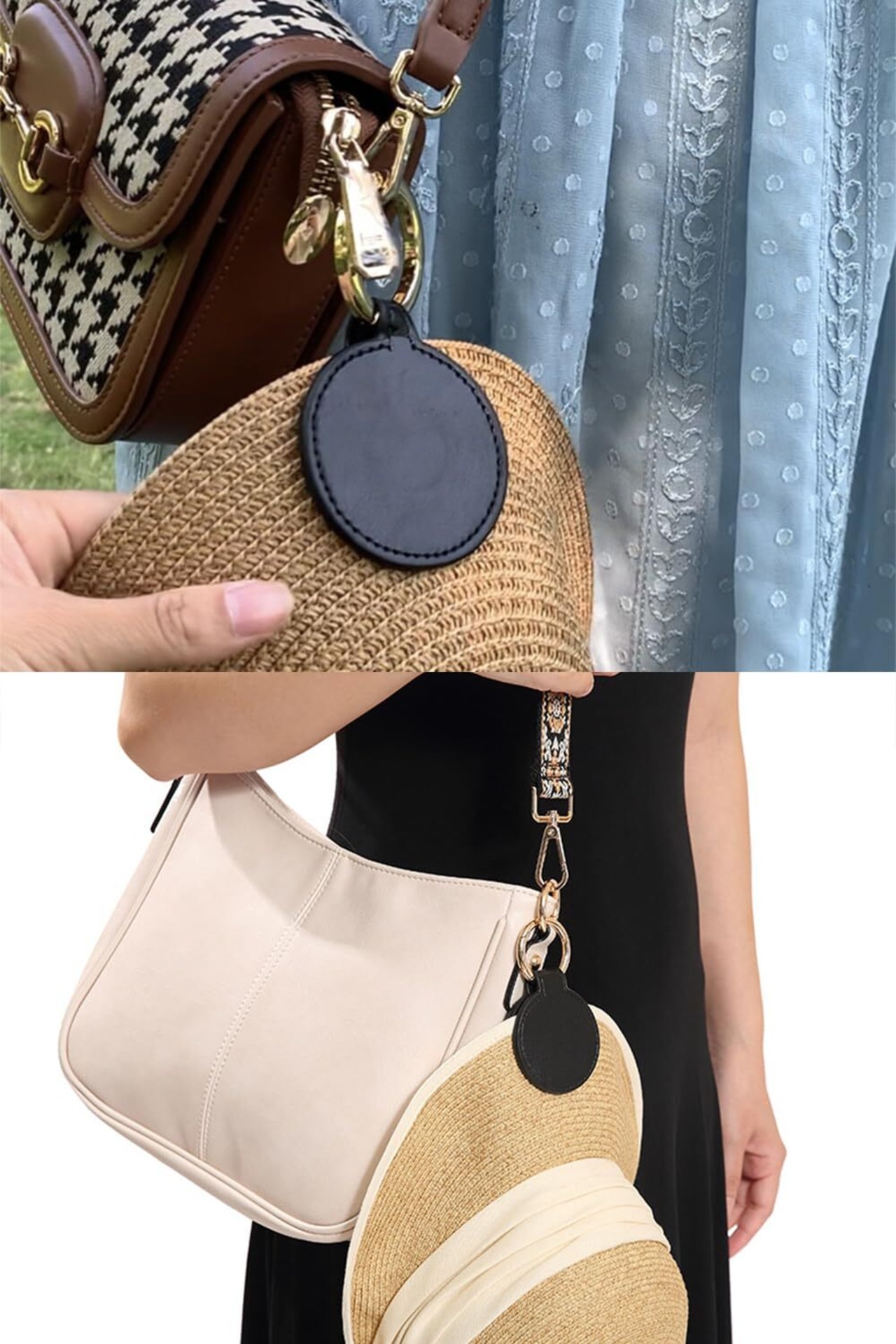 帽子の片側をクリップで留めてバッグに固定するだけで、磁気はとても強く、帽子は簡単には外れない。