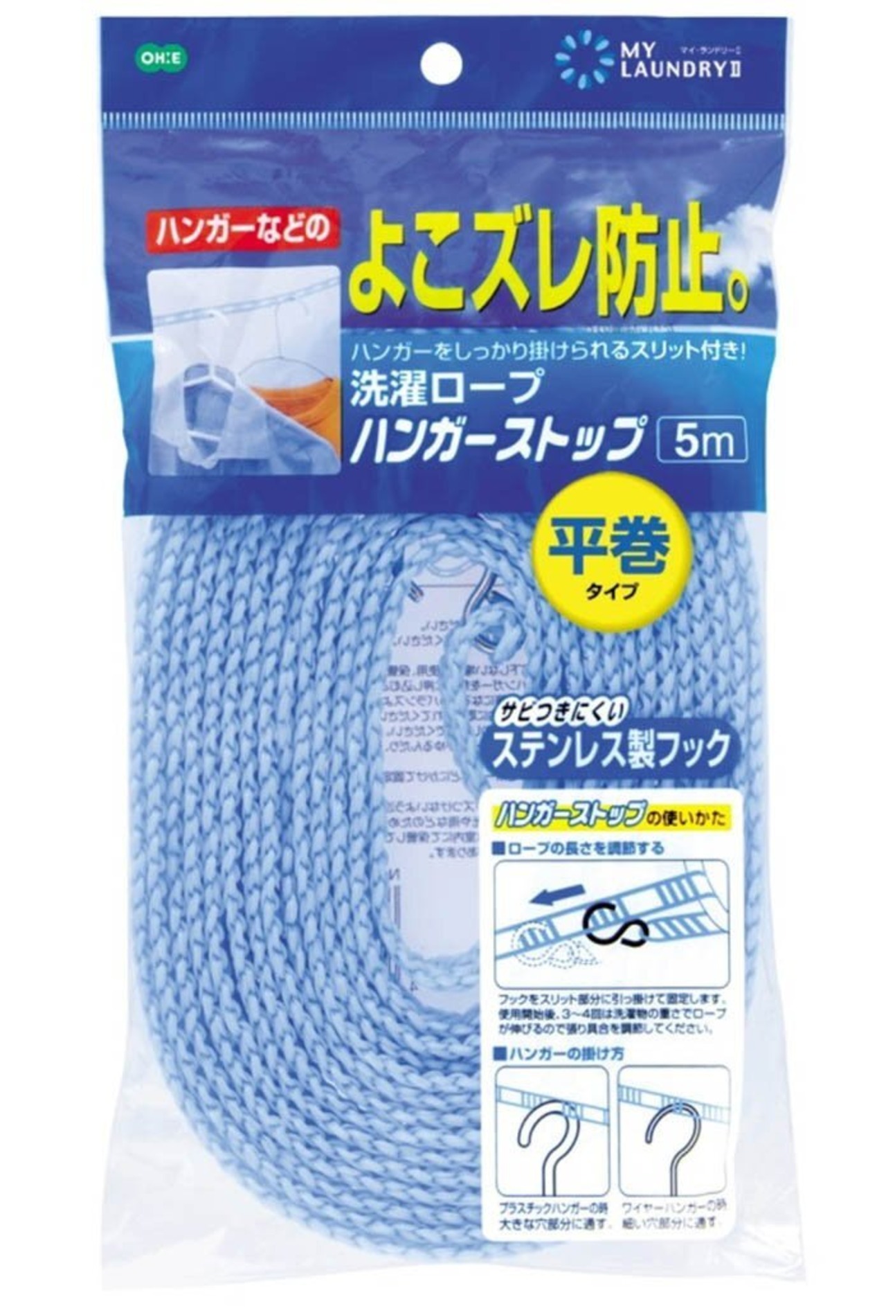 【2025最新】オーエ 洗濯 物干し ロープ ブルー 約5m ハンガーを掛けられるスリット付 ハンガー ストップ