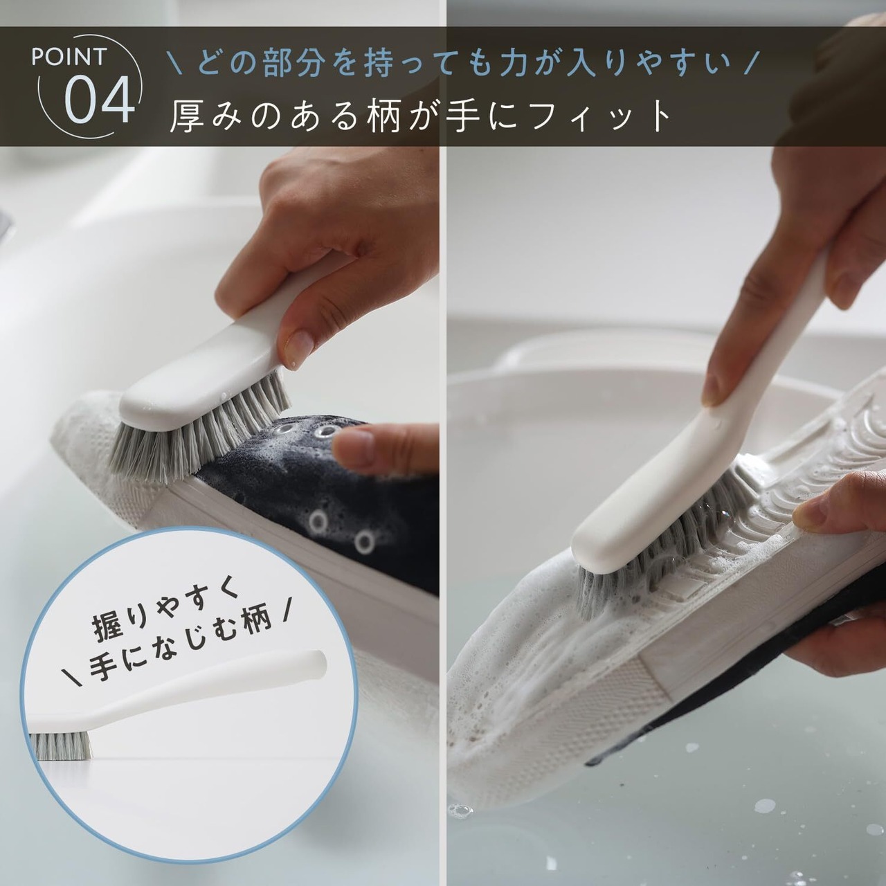 マーナ (marna) つま先まで届くシューズブラシ (隅々まできれいに/日々のブラッシングにも) 靴洗い用 靴用 上履き スニーカー 靴洗い ホワイト W667W