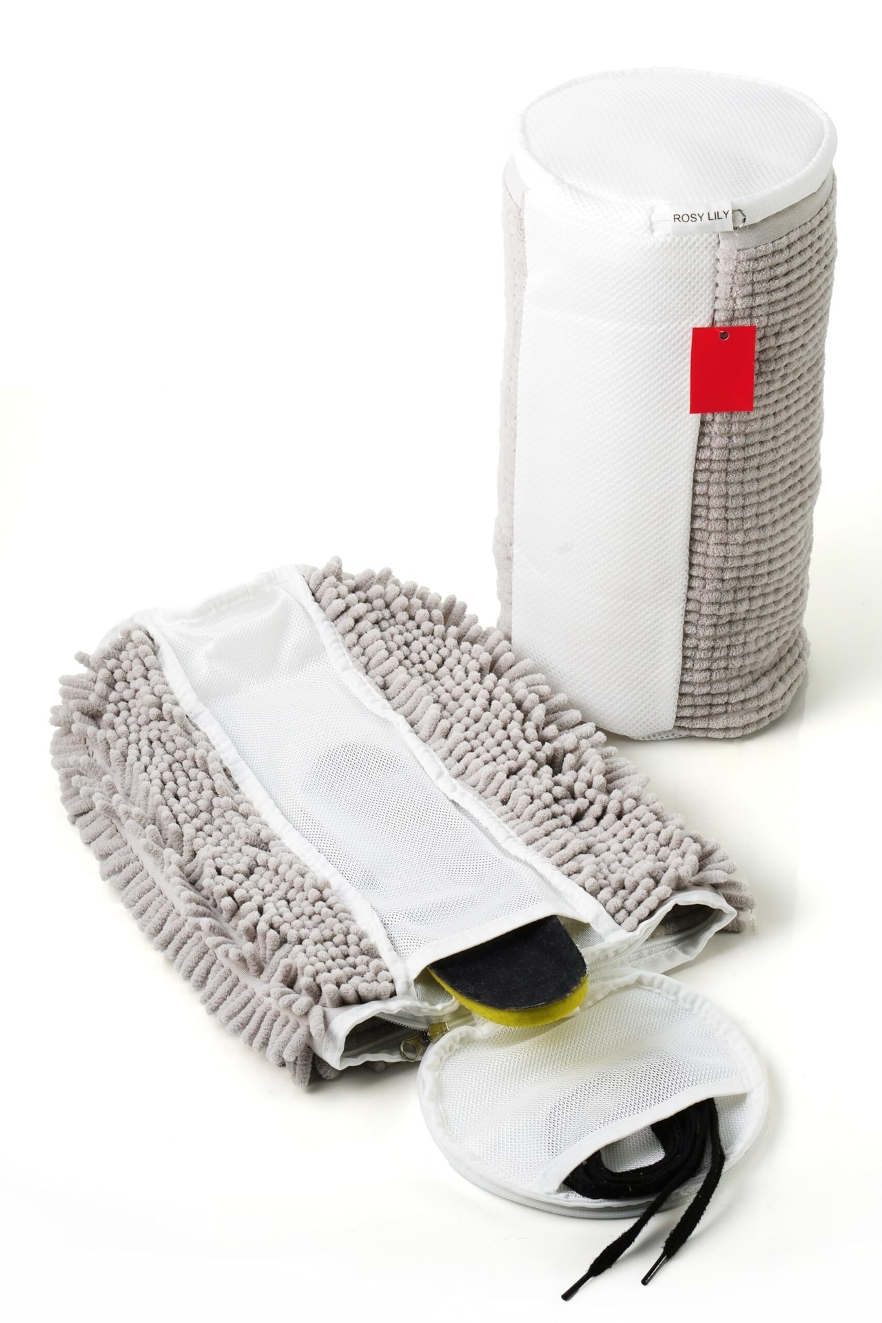 肉厚なネットは洗濯機と靴をダメージから守りつつ、マイクロファイバーの裏起毛が細かい靴の汚れを掻き出し綺麗に洗い上げます。