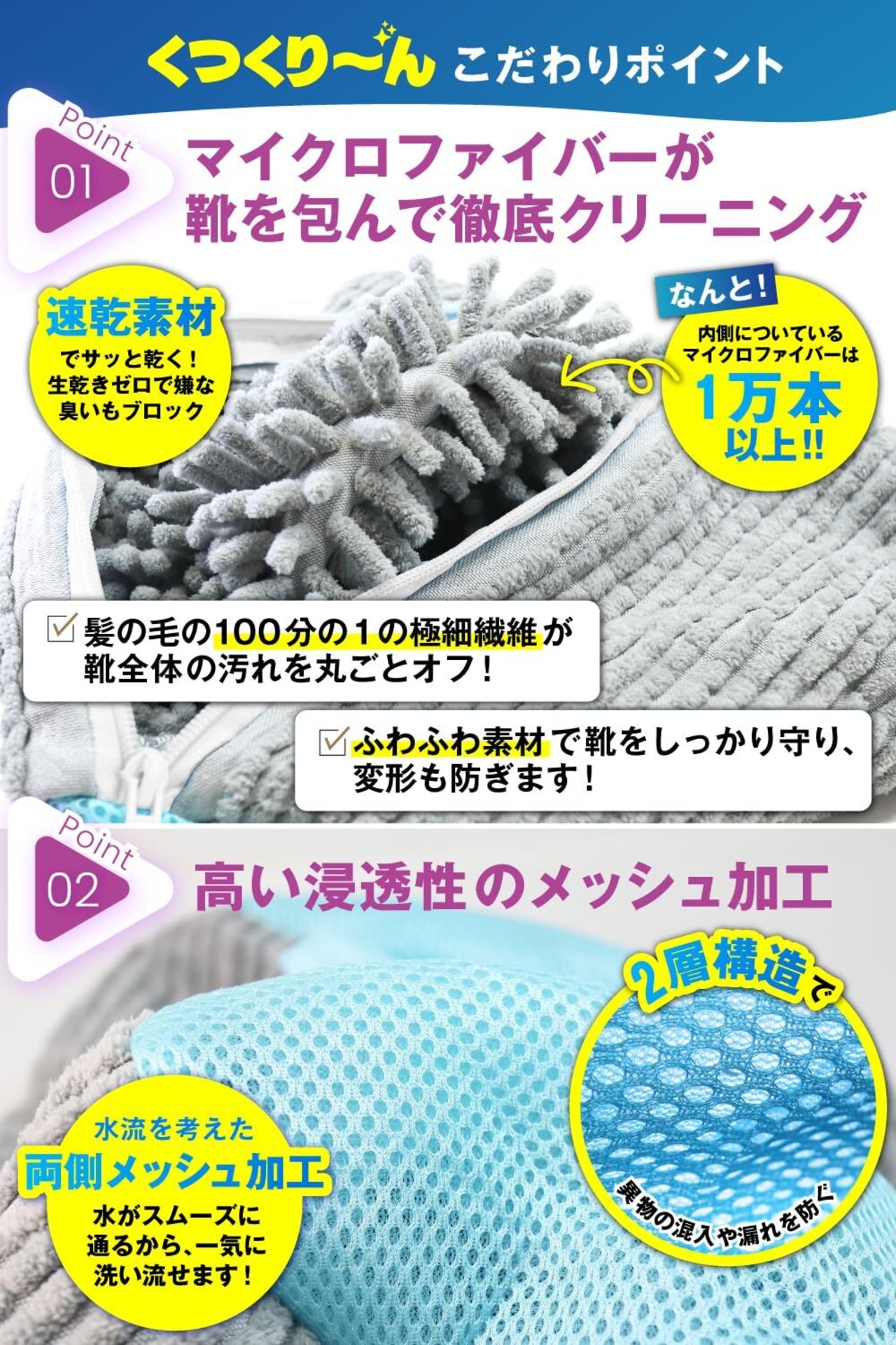 【家事のプロ監修x洗濯機で丸洗いOK】くつくりーん 靴 洗濯ネット 靴用洗濯ネット 【速乾x型崩れ防止x高耐久】PochittoGoods(2)(大, 2, 個)