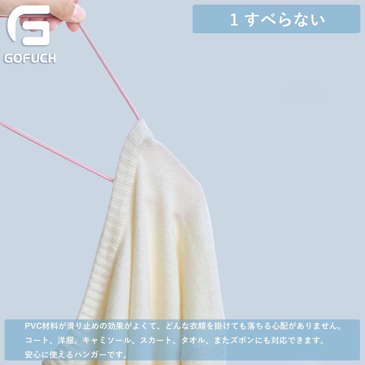 【すべらないハンガー】ハンガーの本体は、高品質のPVC材料とスチールを採用しています。PVC材料が滑り止めの効果がよくて、どんな衣類を掛けても落ちる心配がありません。コート、洋服、キャミソール、スカート、タオル、またズボンにも対応できます。安心に使えるハンガーです。