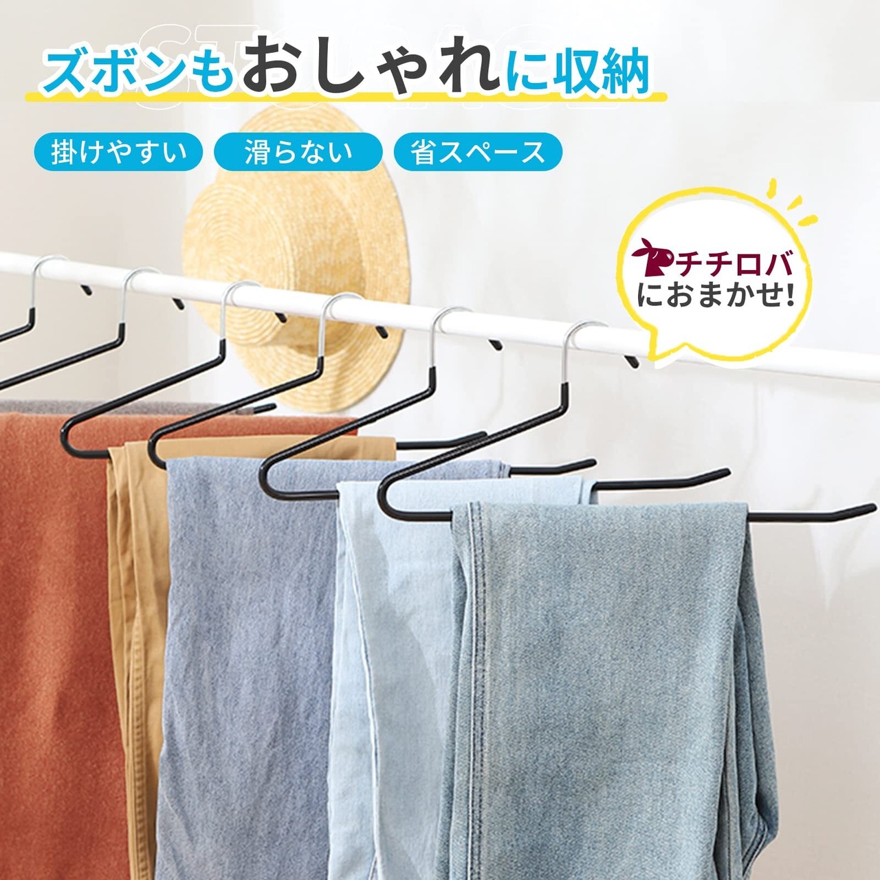 【 限定】チチロバ(TITIROBA) ズボンハンガー スラックス ハンガー パンツハンガー すべらない 跡がつかない 10本組 ブラック 22AB013