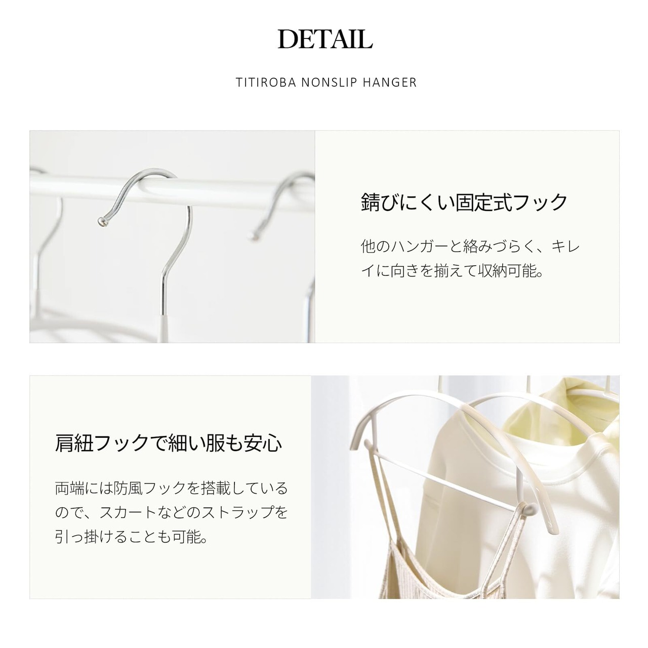 【特別価格】【オシャレでスッキリ】ハンガー 20本組 チチロバ(TITIROBA) すべらない かたくずれ防止 跡がつかない 滑らない ホワイト