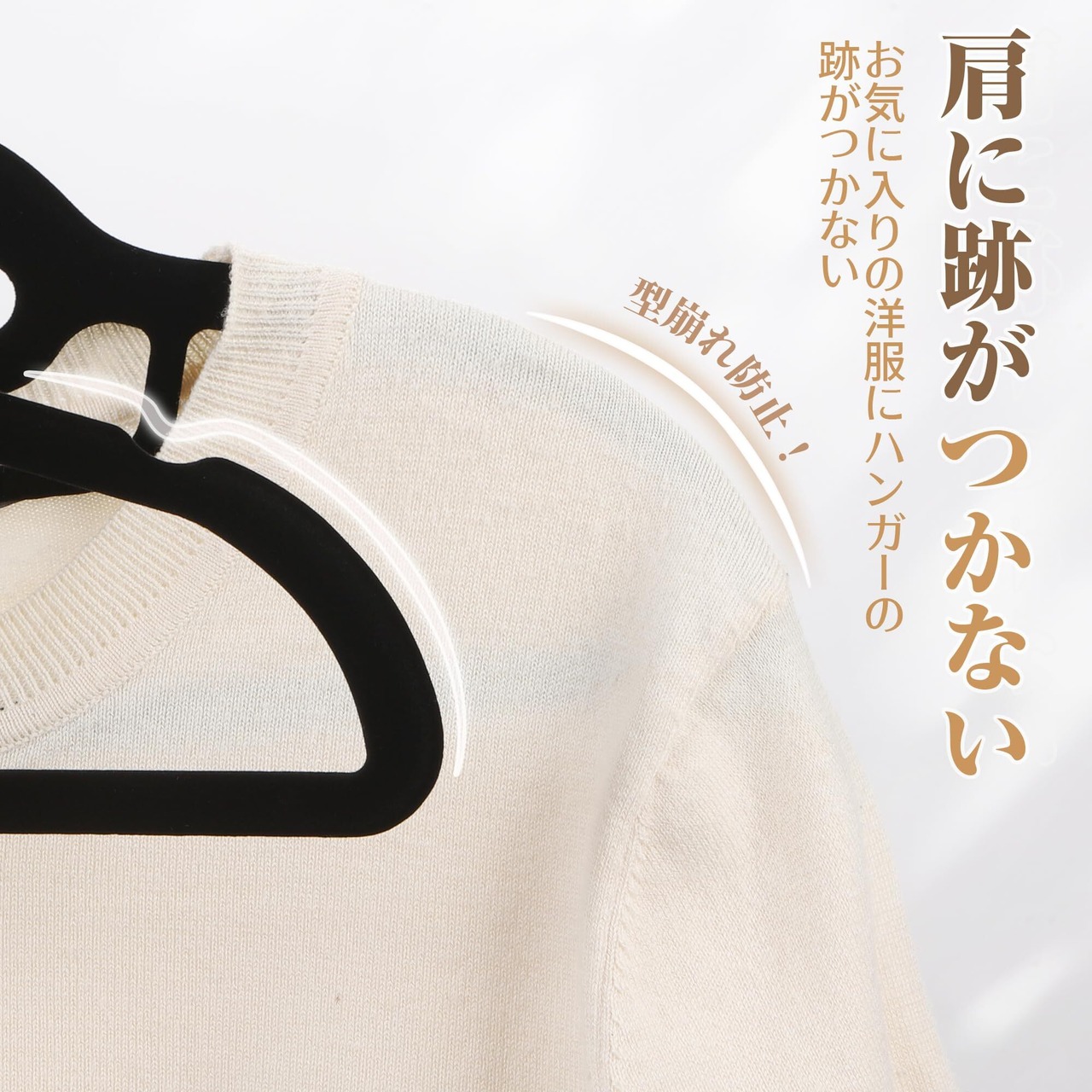 【新着商品】【 限定】チチロバ(TITIROBA) ハンガー すべらない かたくずれ防止 襟が伸びない 伸び防止 ベルベット製 20本組 ブラック 23AB201