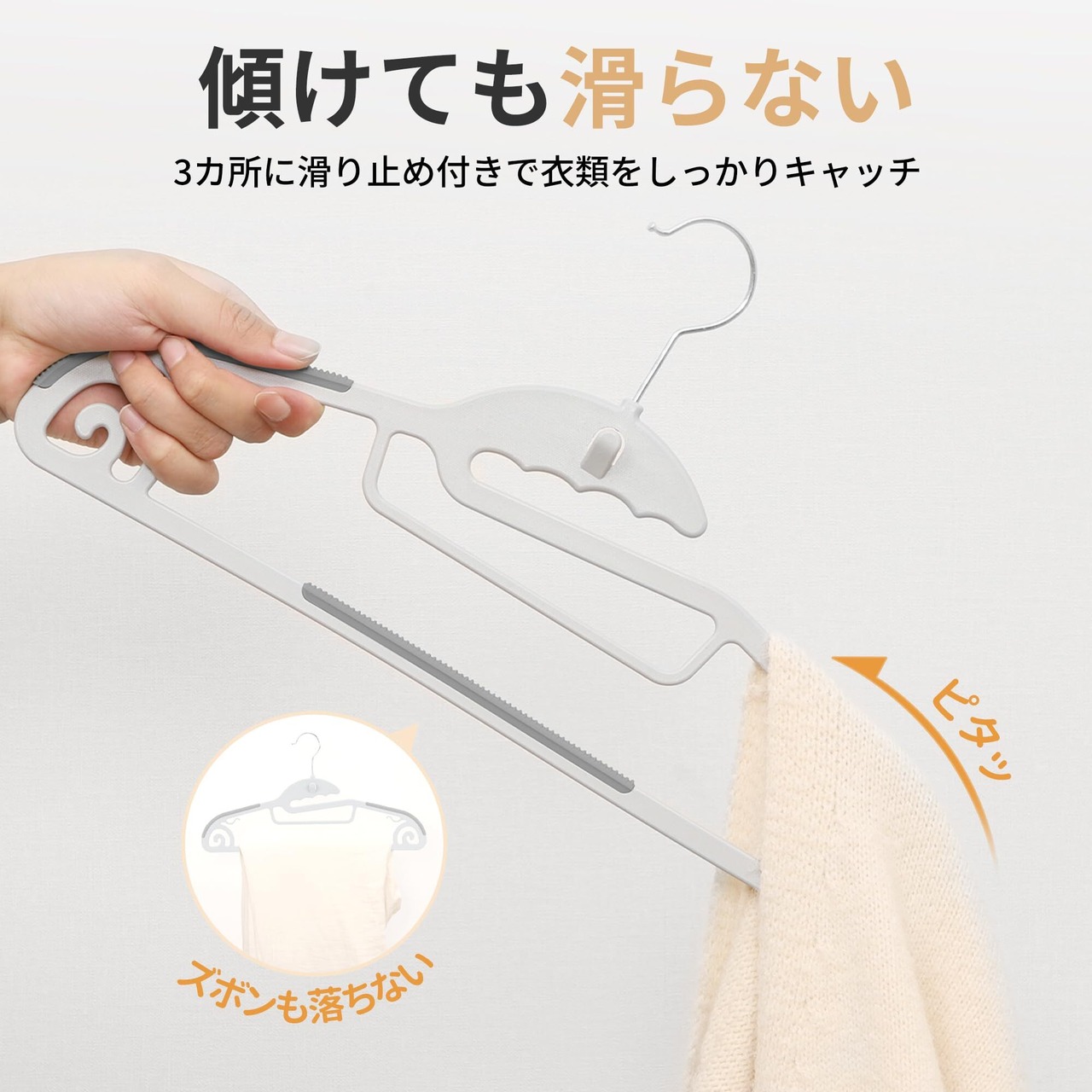 【傾けてもすべらない】ラバー加工でどんな衣類もしっかりキャッチ。