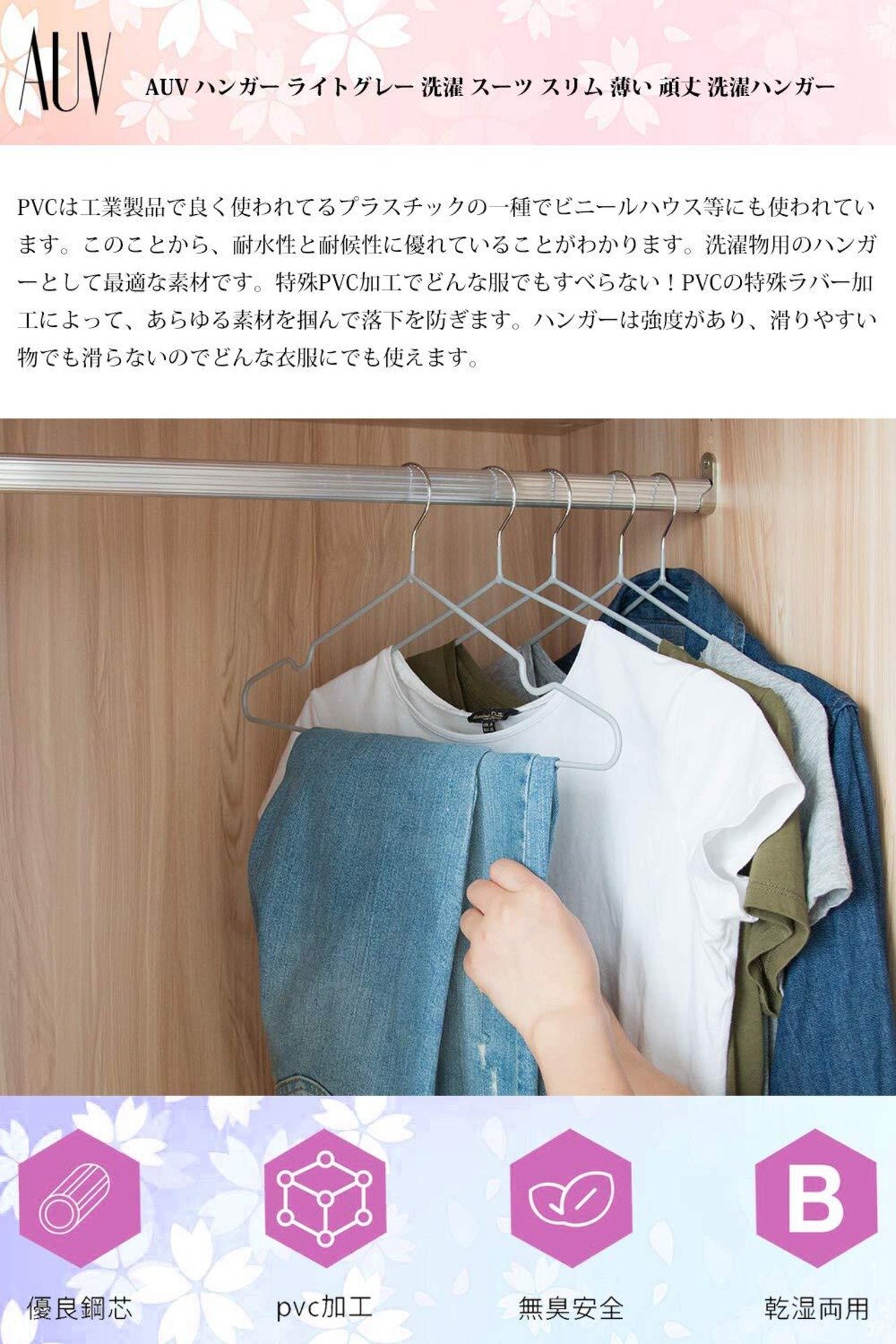 AUV ハンガー すべらない PVC特殊ラバー加工 30本組 セット 洗濯 衣類ハンガー 多機能 滑り止め 変形にくい 物干し hanger 曲がらな 超強い荷重 乾湿両用 PVC(グレー)