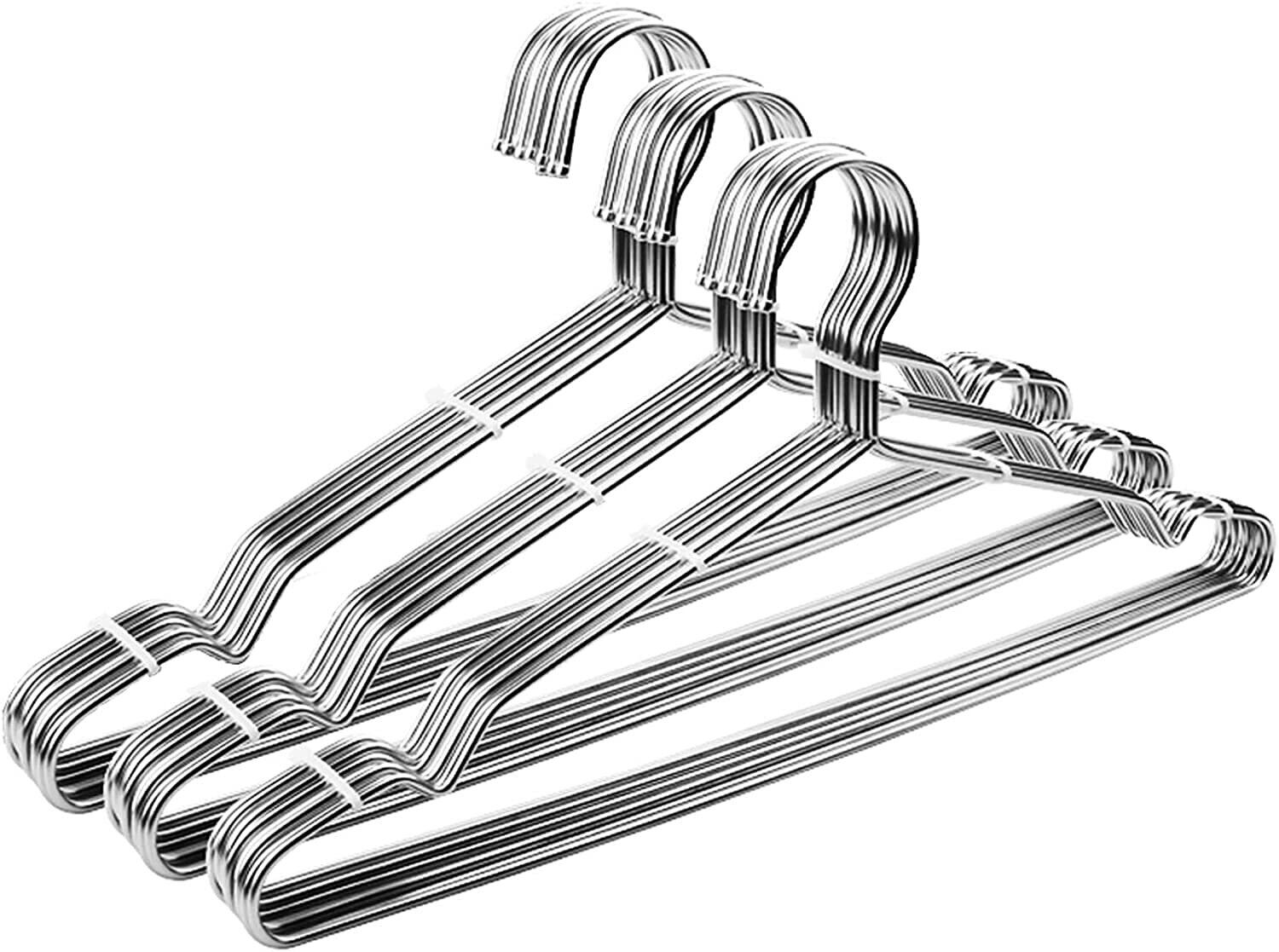 ハンガー、ステンレスハンガー、30本セット、ランドリーハンガー、防錆、曲げ可能、ハンガー、耐久性、便利な収納、スカート、ズボン、コート、ボトムハンガー、ハンガー、滑り止め、0.1インチ(3.2 mm)、幅16.5 インチ(42 cm)、高さ7.5インチ(19 cm)