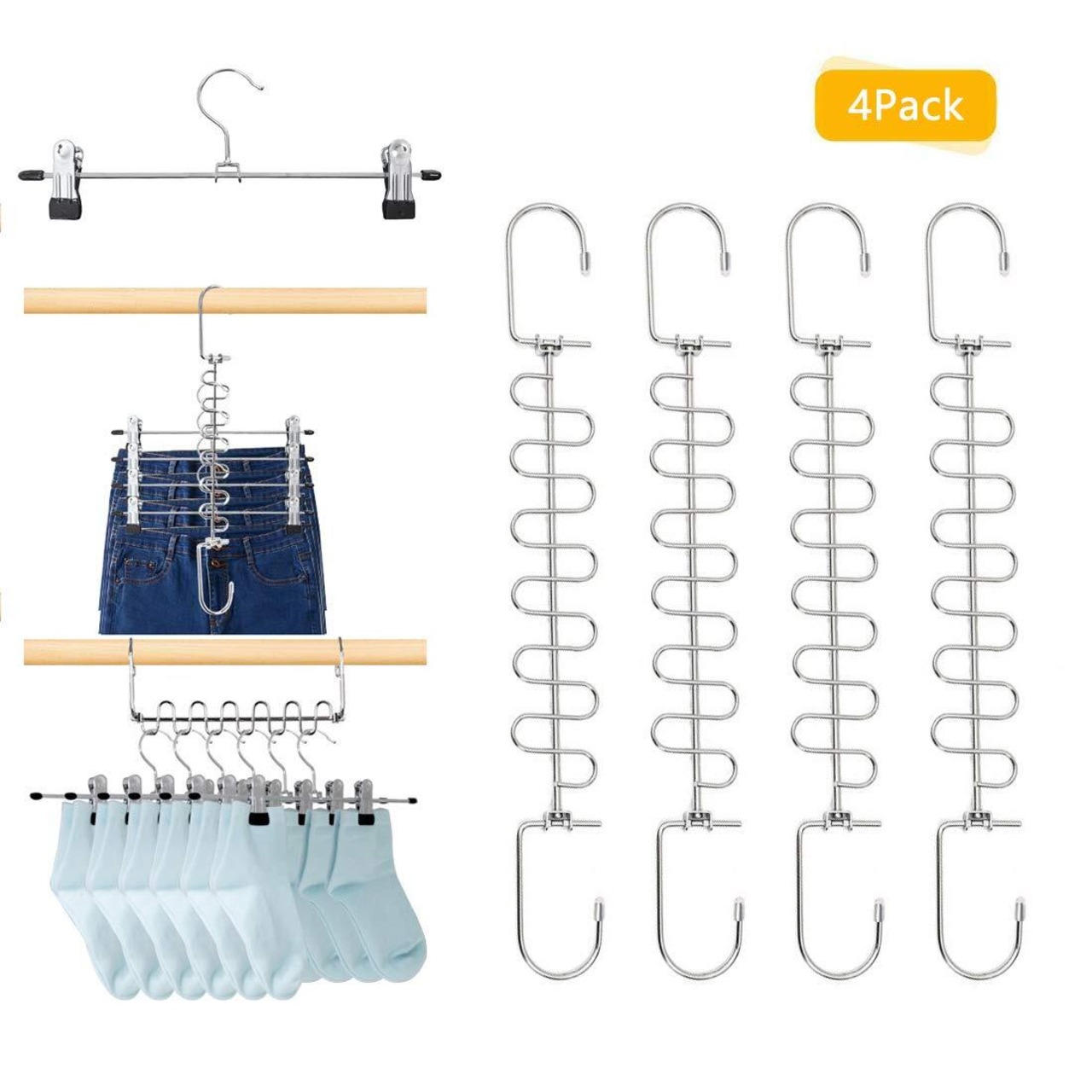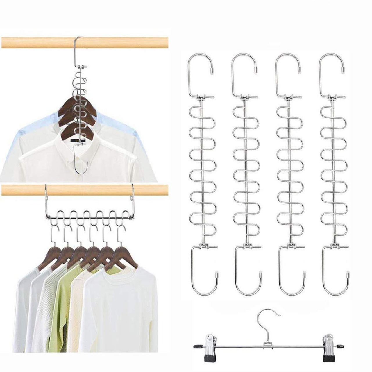 DUOFIRE 省スペースハンガー 縦横両用 12連 ハンガー ステンレス製 丈夫 ハンガーフック クローゼット収納 マジックハンガー (4本組)
