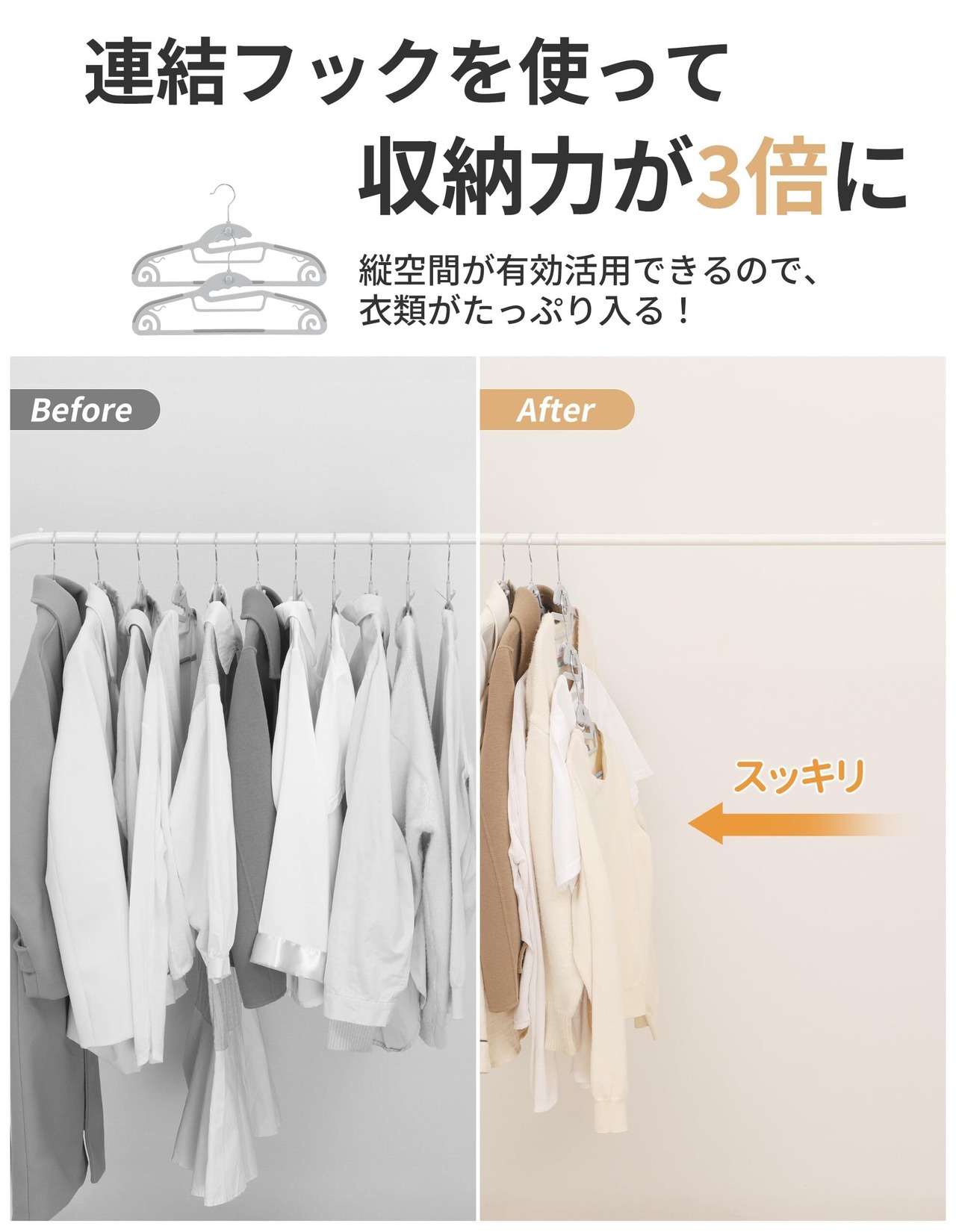 【連結フック付き】ハンガーを連結できるフック付き。連結させることによって、クローゼットの縦の無駄な空間を有効活用!