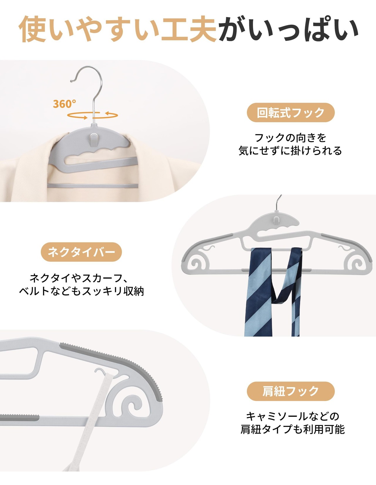 【 限定】アイクラシ(Ikurashi) ハンガー すべらない 30本組 襟が伸びない かたくずれ防止 連結フック付き 回転式フック 多機能 グレー