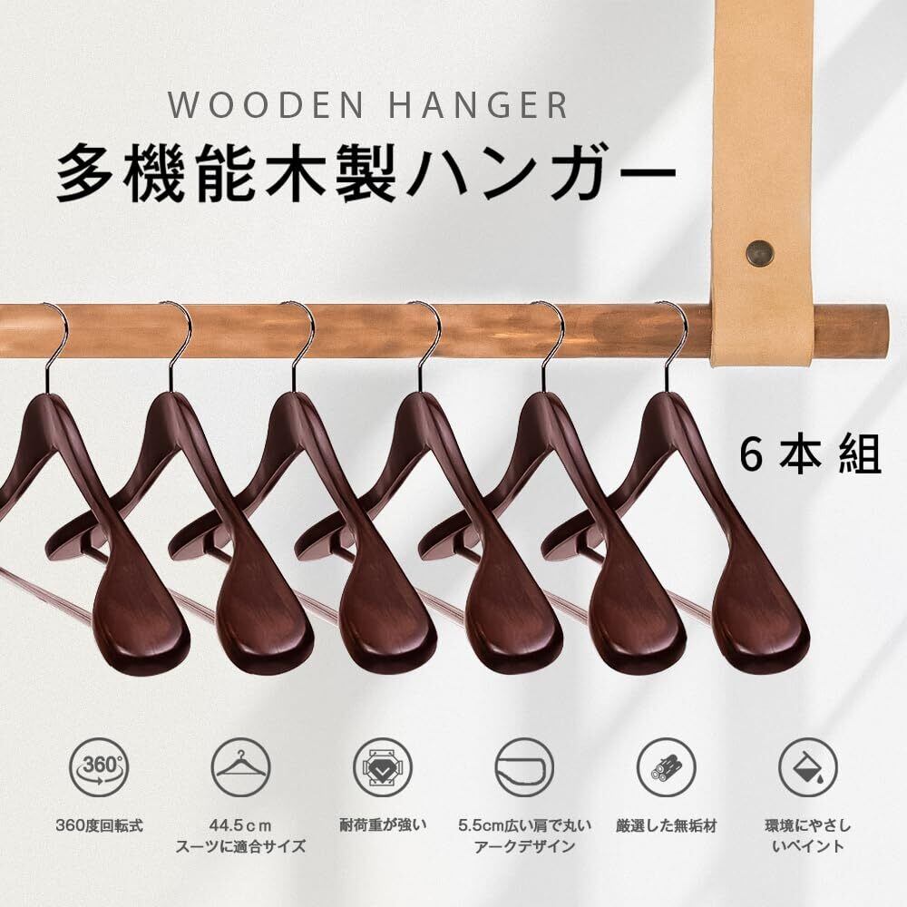【新着商品】木製ハンガー 6本セット ハンガー 木製 メンズ スーツハンガー 型崩れ防止 360度回転