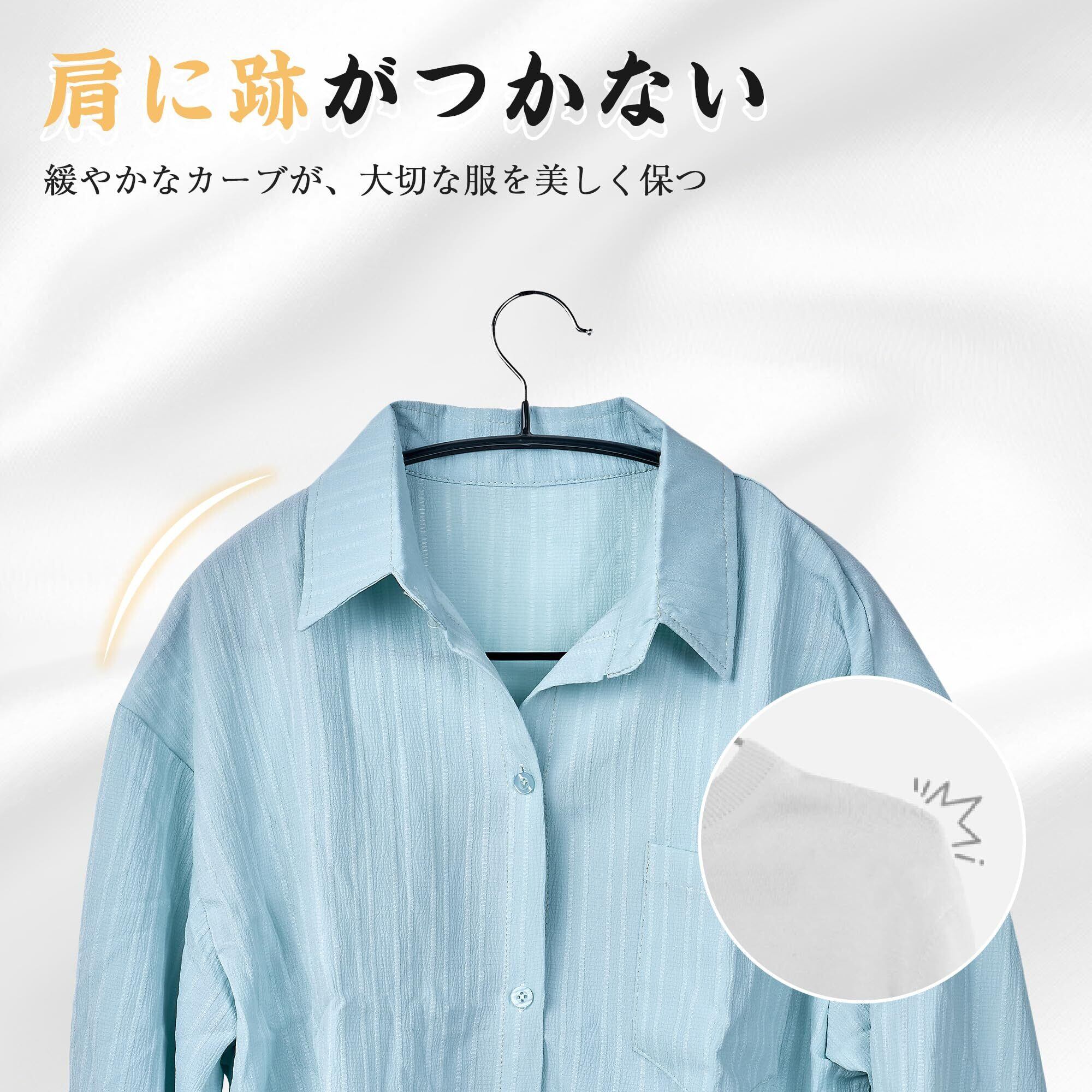 【すべらない】特殊な滑り止めコーティングにより、衣類を掛けても滑り落ちる心配がありません。コート、シャツ、キャミソール、スカート、スーツ、ズボンなど幅広い衣類に対応し、厚手のコートや繊細なキャミソールもしっかりと保持します。日常使いにも安心してご利用いただけます