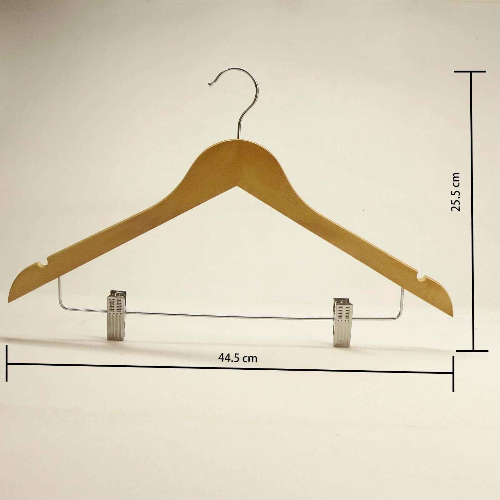 【セット内容】バー付き木製ハンガー10本セット。サイズ:肩幅44.5 cm*肩厚1.2 cm*高さ25.5 cm。
