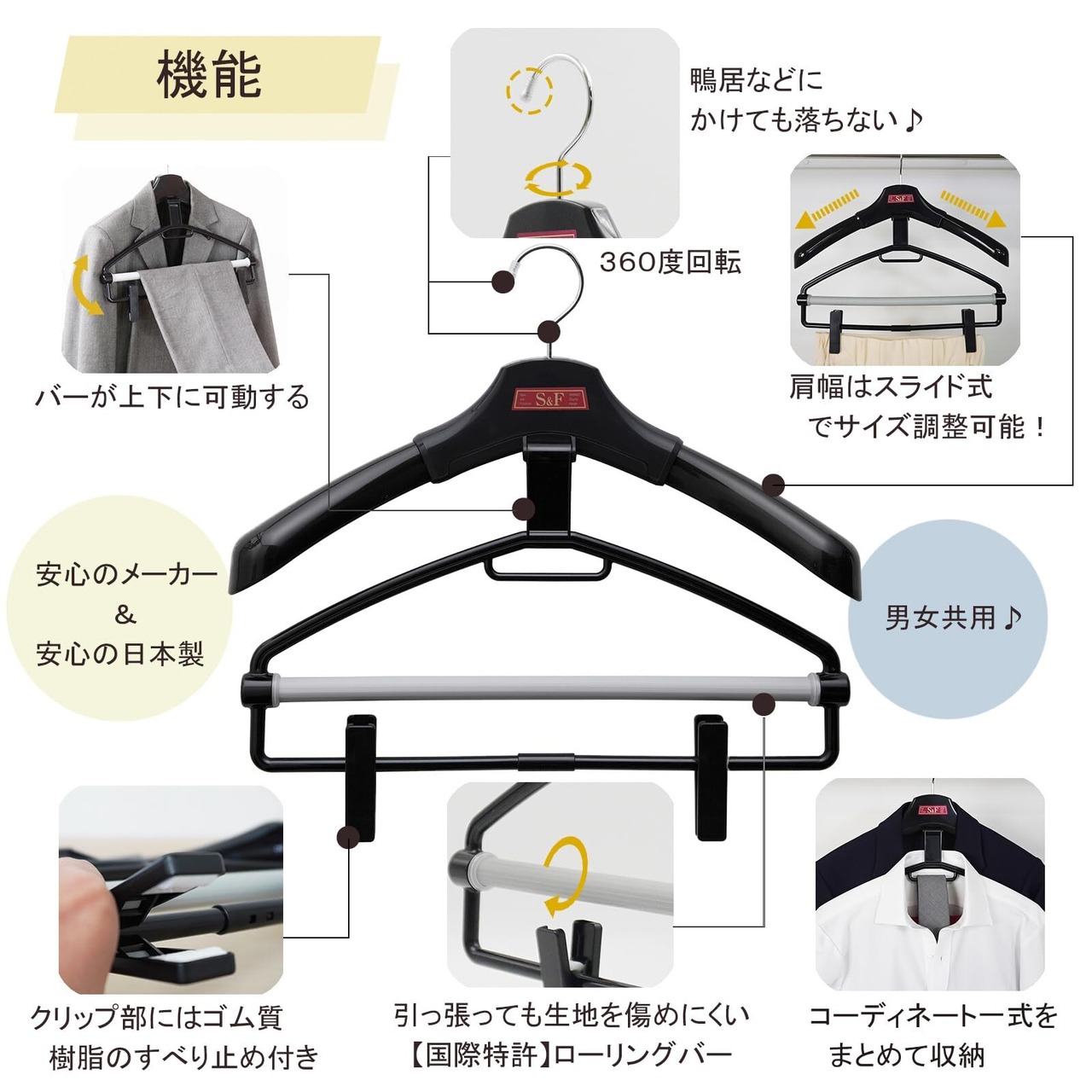 めんどくさくない!バーが上下するスーツ 学生服ハンガー4本セット【シンコハンガー公式】S&Fニュー立体スライドハンガー4本セット|学生服ハンガー スーツハンガー ジャケットハンガー コートハンガー スーツ用 コート用 ジャケット用 アウター 収納ハンガー 衣類ハンガー 洋服ハンガー すべり止め すべりどめ シンコハンガー 収納ハンガー 収納 クローゼット 押入れ
