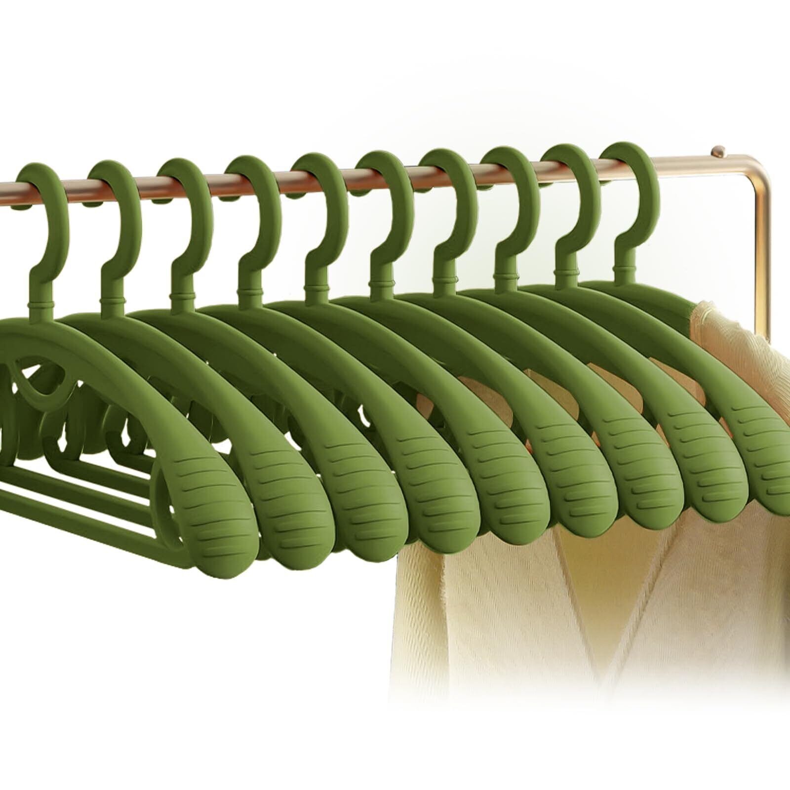 OYUEGE 洗濯ハンガー 10本組 ハンガー かたくずれ防止 衣類用 360度回転フック おしゃれ すべらない 型崩れ防止 頑丈 跡がつかないハンガー 滑らないハンガー 乾湿両用 グリーン