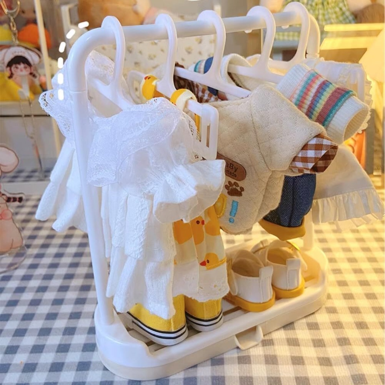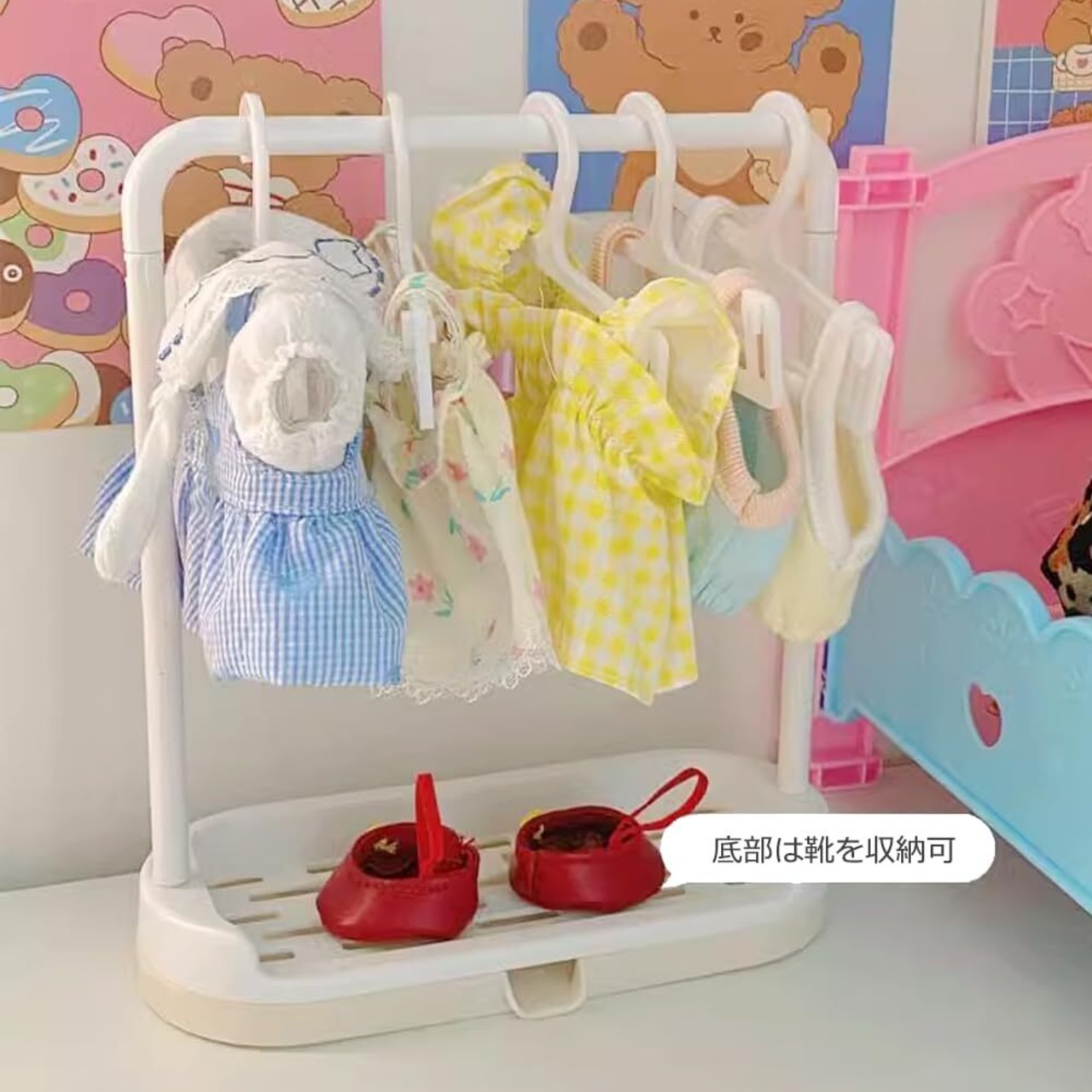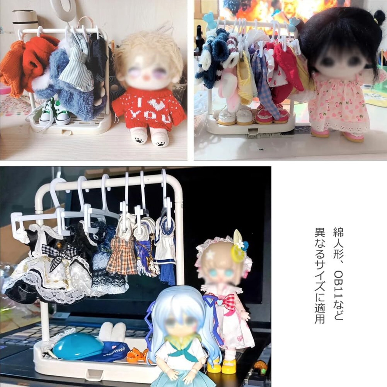 HIGHAWK人形用 ハンガーラック 2個セット 洋服掛け 綿人形 ドール服 着せ替え人形服 衣類ラック オーガナイザー ミニハンガー20本付き