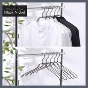 TAMATOSHI ダブルスチールハンガー 幅42cm 10本組 ブラックニッケルメッキ 5年 店舗什器メーカー開発 スリム 高級 自宅 店舗 洗濯 薄い あとがつかない 頑丈 収納 錆びにくい 曲がらない