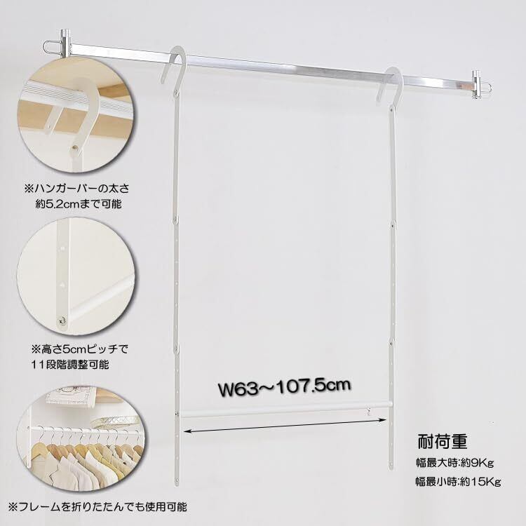 ■ 全体許容耐荷重:・ハンガーパイプ最小時15Kg・ハンガーパイプ最大時 9Kg