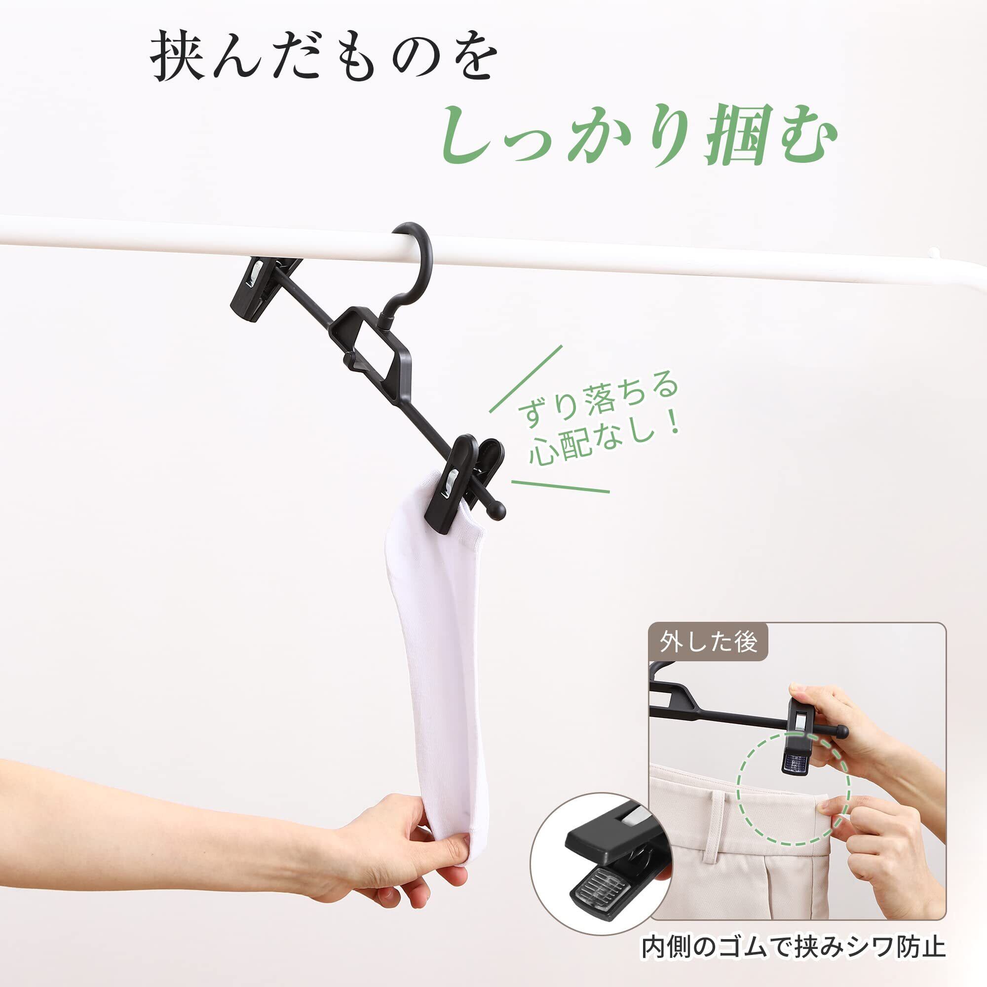 【ボトムス幅に合わせて調整可能】クリップは左右にスライドするので、子供用の服から大人用の服まで使用可能。