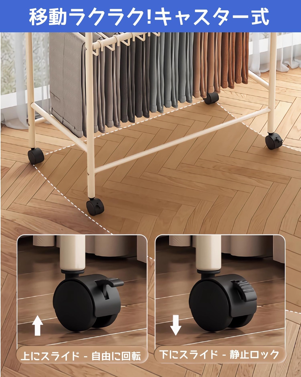 【移動ラクラク、どこでも収納可能】ClutterFreeのスラックスハンガーラックはキャスター付きで頑丈なスチール製なので軽くて移動がラクラク、ストッパーが付いているのでクローゼットやウォークインクローゼット、押し入れなどにも収納可能です 好きな時に好きな場所に置いて活用できる!