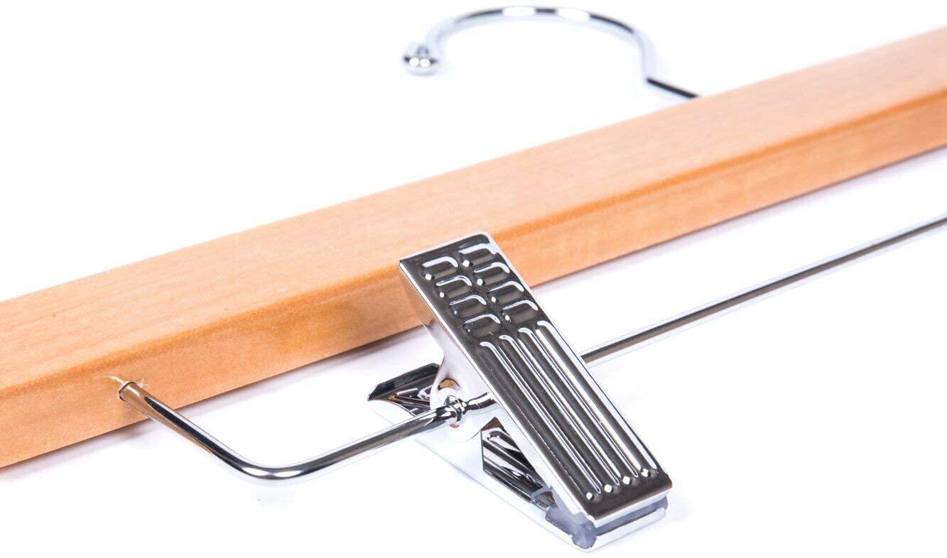 Amber Home 木製ズボンハンガー スカートハンガー 10本組 パンツハンガー ボトムス スラックス 型崩れ防止 滑り止め 調節可能 強力クリップ シワ防止 回転フック 防錆 クローゼット収納整理 省スペース ナチュラル