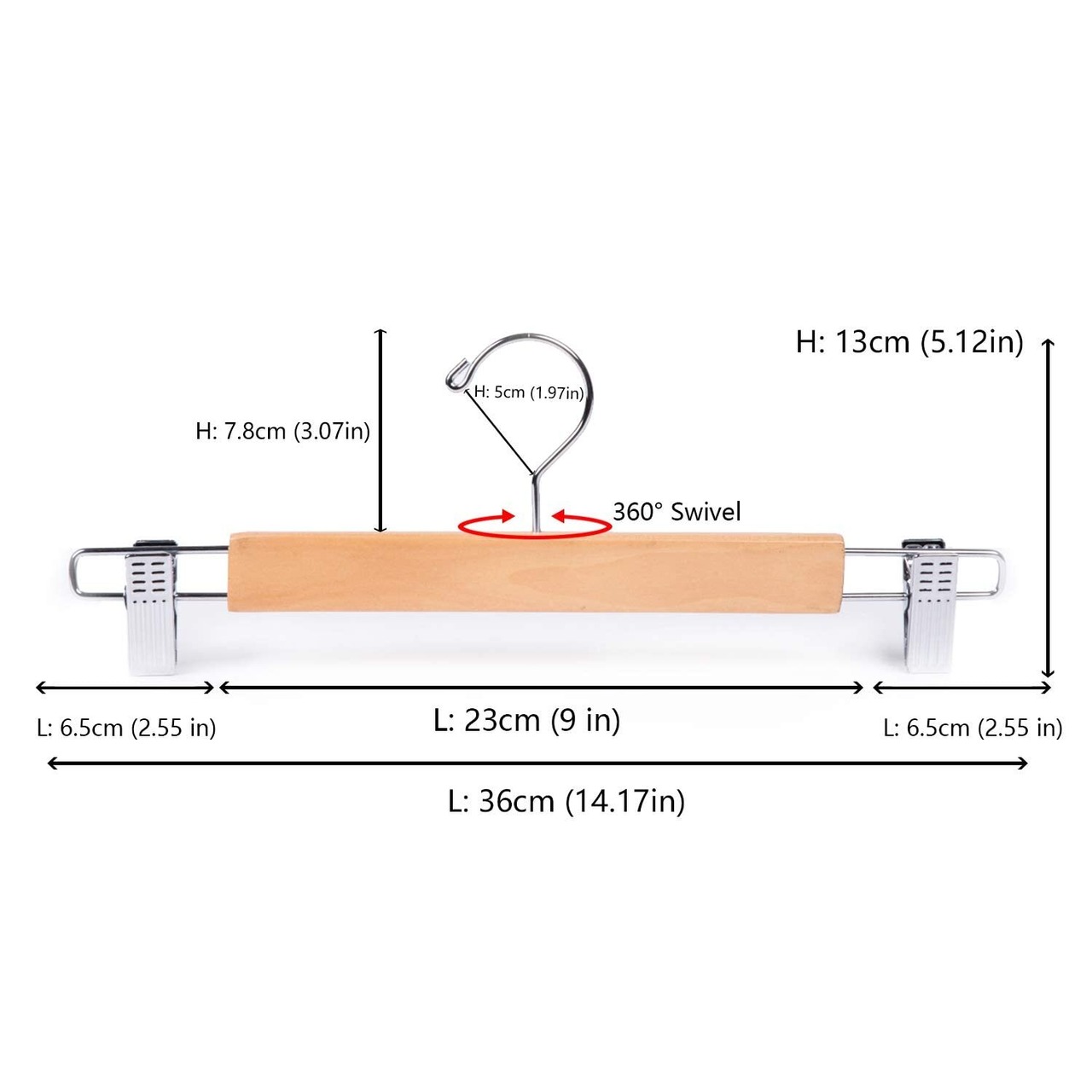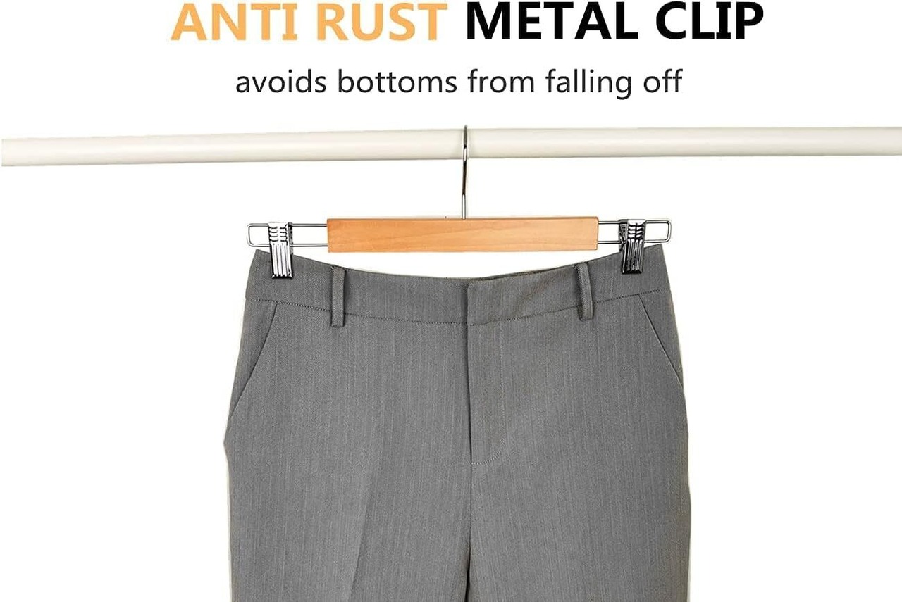 Amber Home 木製ズボンハンガー スカートハンガー 10本組 パンツハンガー ボトムス スラックス 型崩れ防止 滑り止め 調節可能 強力クリップ シワ防止 回転フック 防錆 クローゼット収納整理 省スペース ナチュラル