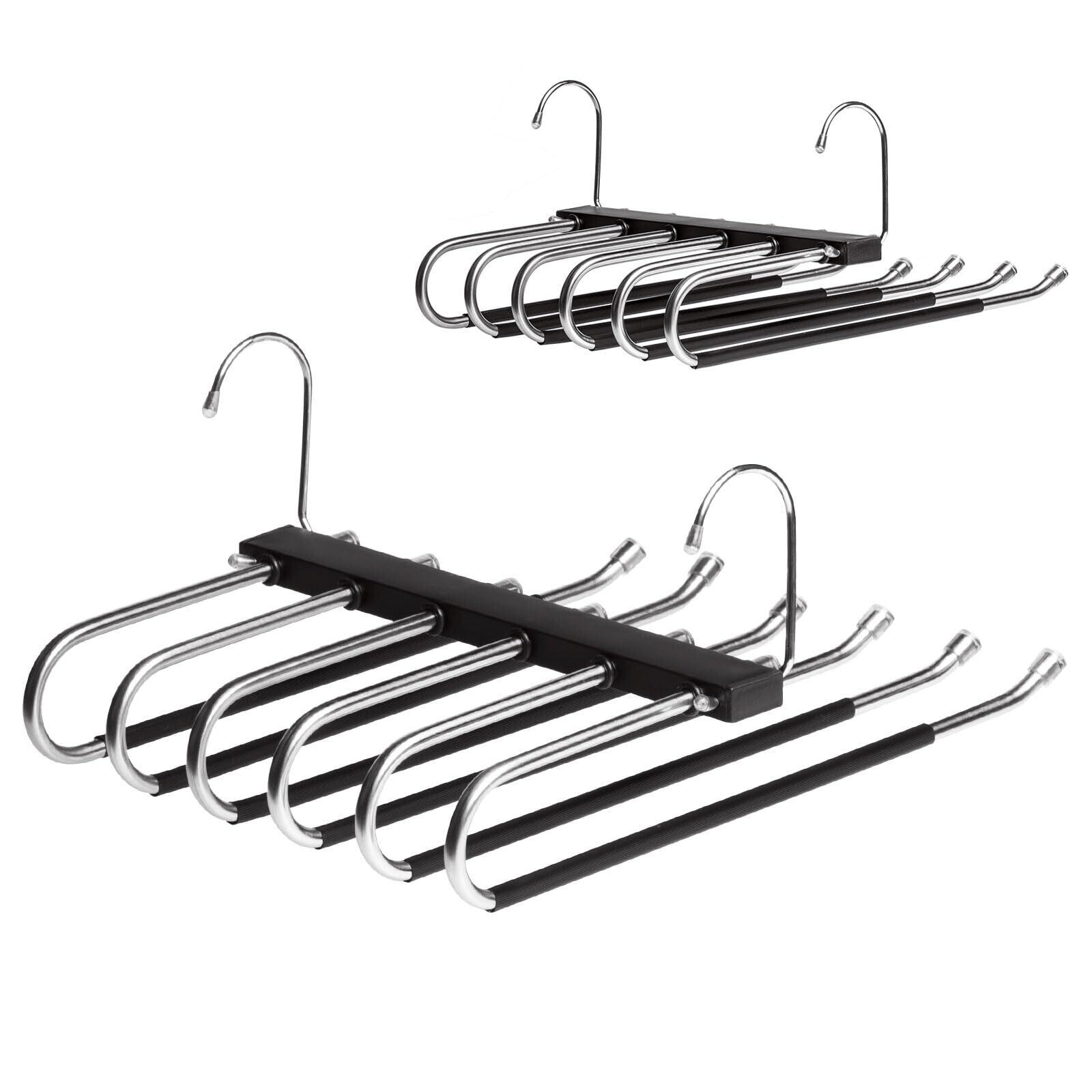 【新着商品】八番屋 ズボンハンガー 2本組 スラックスハンガー ズボン ハンガー パンツ ハンガー 収納 省スペース 多機能 滑り止め 跡がつかない 6連 ステンレス鋼 幅34cm