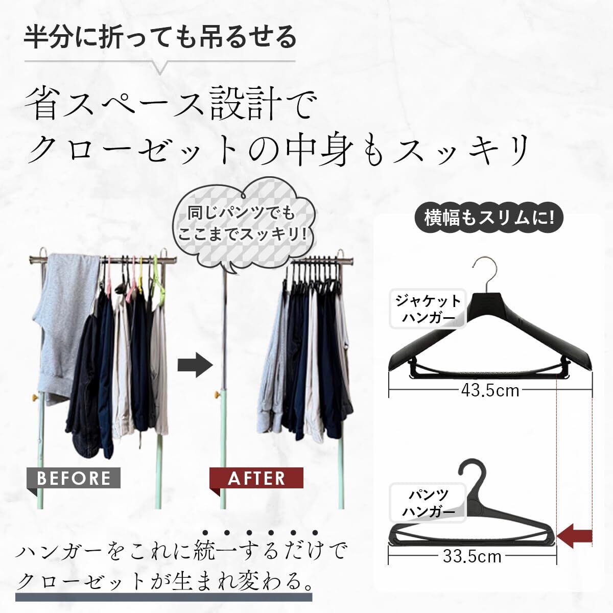 【省スペース】クローゼットをすっきり整理整頓 スラックスやスカートをスマートに収納できるサイズ感。場所を取らず複数枚の整理に最適です。