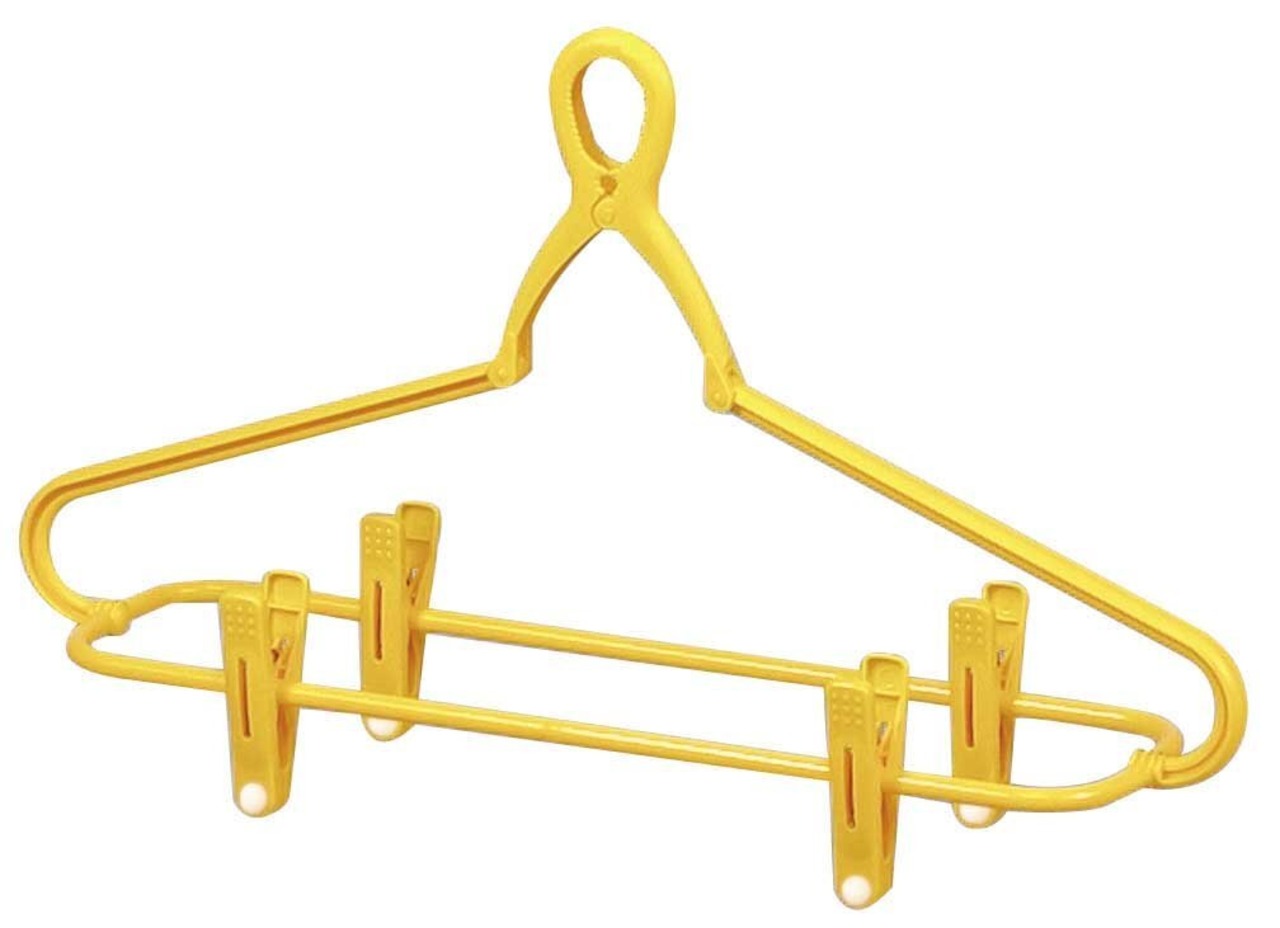 ●4つの強力バネクリップが重たいジーンズをしっかり挟んで形よく干せる