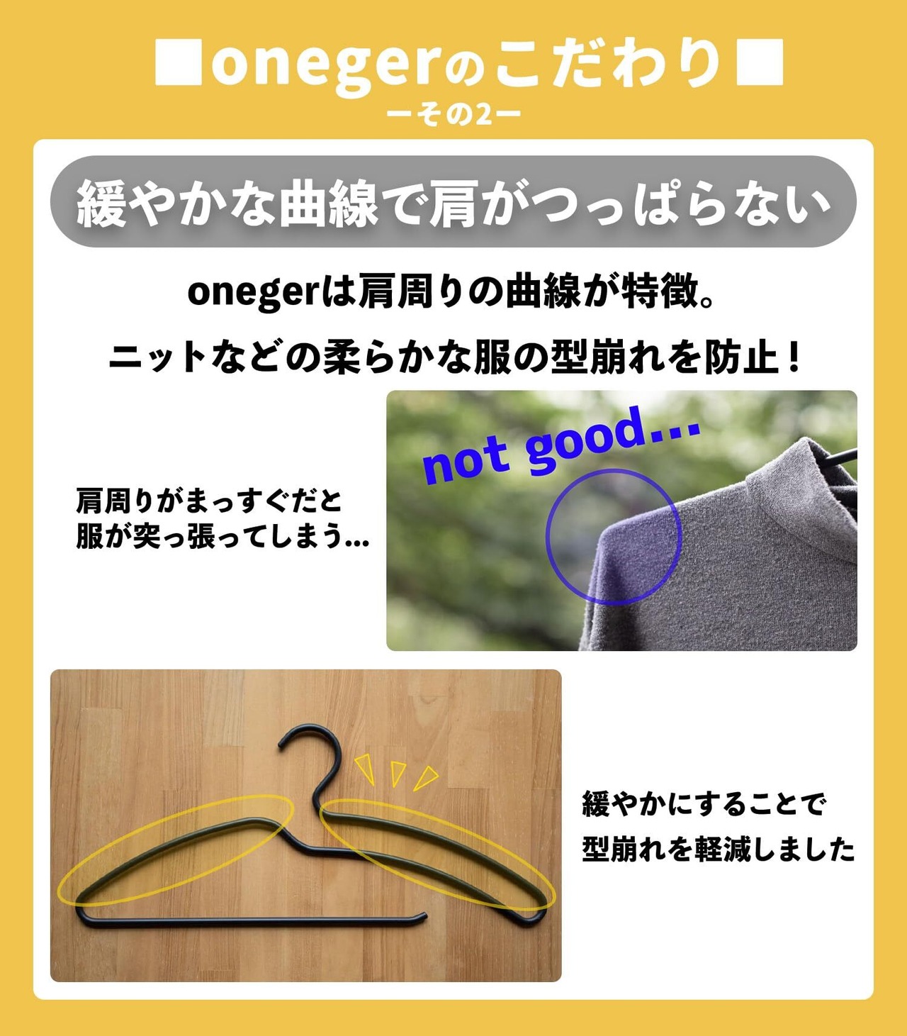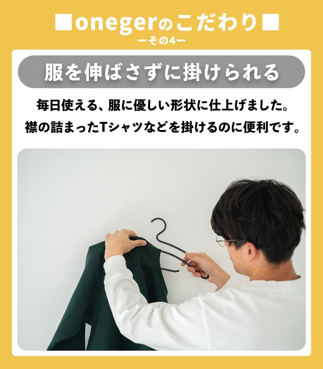 ※onegerは仕様上、通常のハンガーよりも1本あたりの重量が重くなっております。あらかじめご認識の上でお買い求めください。