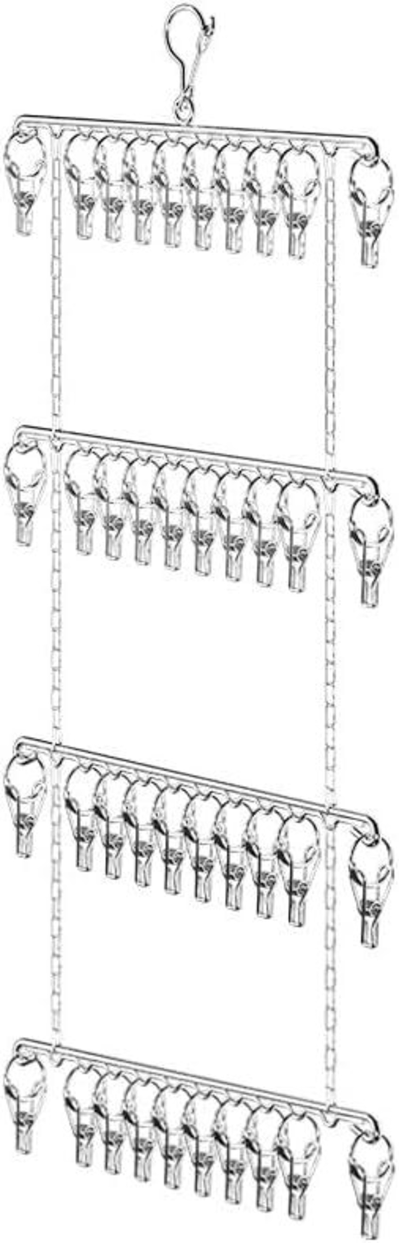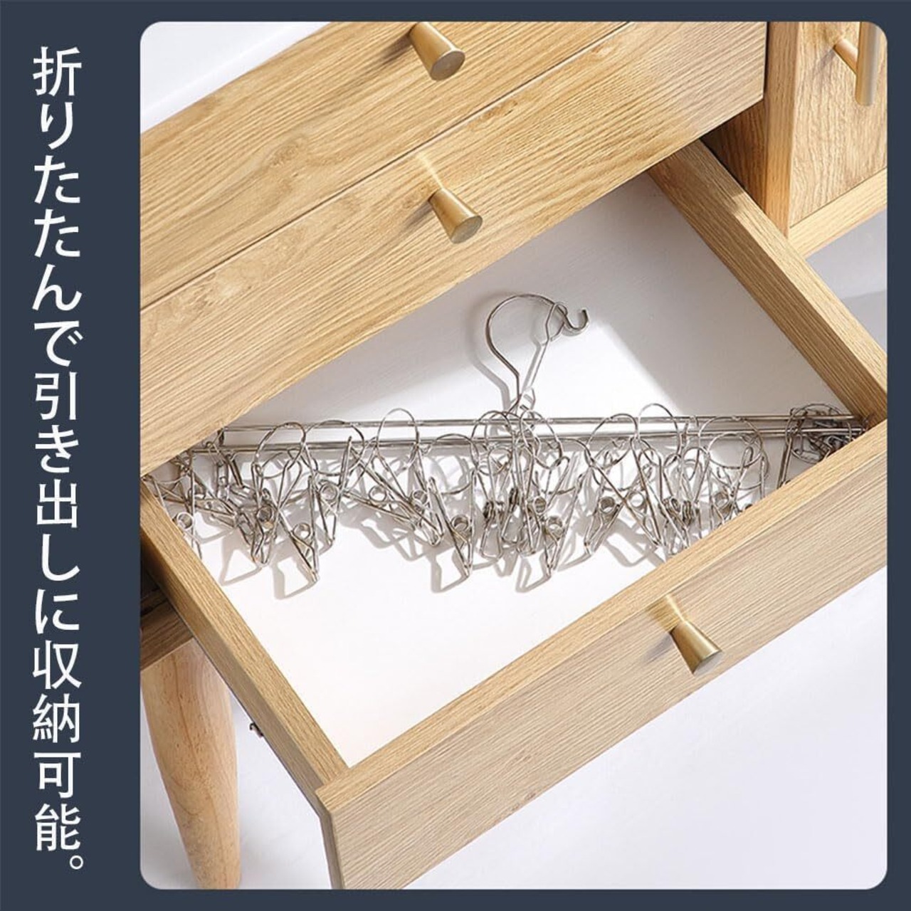 【限定セール】ピンチハンガー 縦置き たてがた 20ピンチ 物干しハンガー ステンレスピンチハンガー ステンレスハンガー 強力収納 錆防止 靴下 下着 タオル ブラジャー ネクタイなどの小物対応 物干し 洗濯ハンガー (40ピンチチェーンクリップハ)