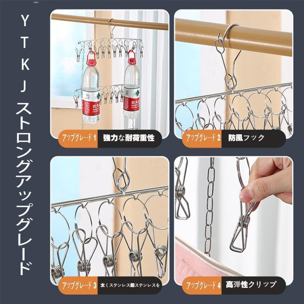 ピンチハンガー 縦置き たてがた 20ピンチ 物干しハンガー ステンレスピンチハンガー ステンレスハンガー 強力収納 錆防止 靴下 下着 タオル ブラジャー ネクタイなどの小物対応 物干し 洗濯ハンガー (40ピンチチェーンクリップハ)