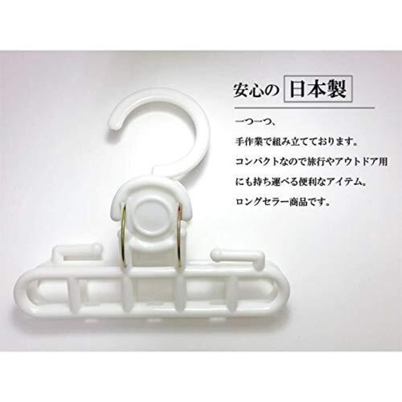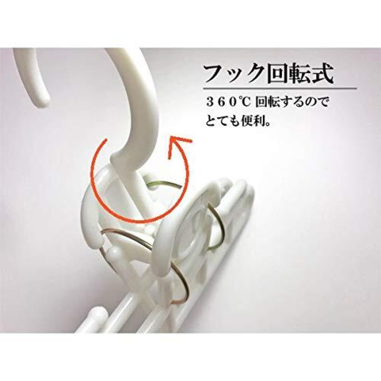 フック回転式で360度回転します。ズボンやスカートを干すのに便利です。コンパクトなので、旅行やアウトドアにも!