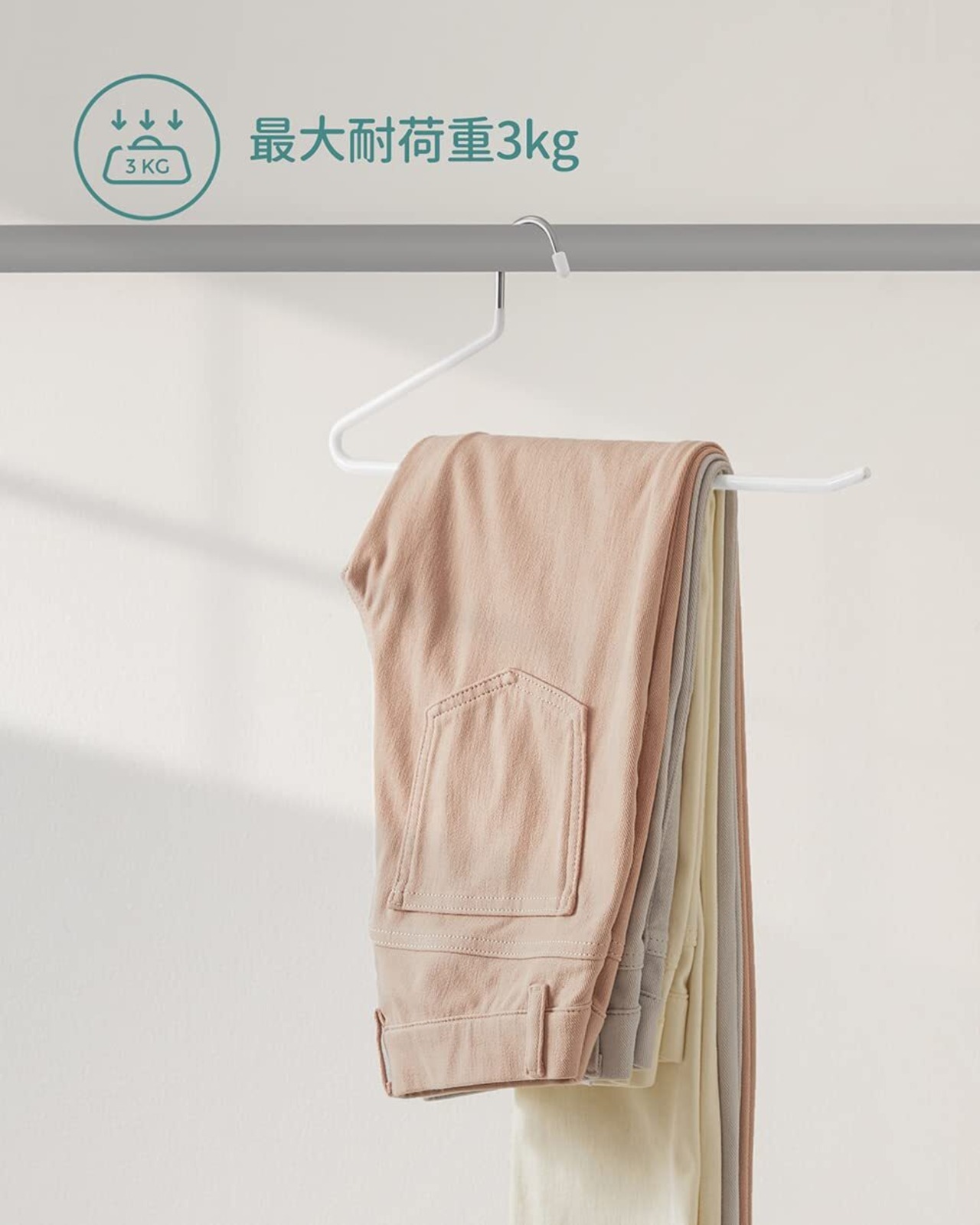 SONGMICS ハンガー ズボン 20本 スラックスハンガー すべらない 洗濯物干し 頑丈 デニム適用 省ペース スリム 跡がつかない パンツスカート ストール ホワイト CRI004WT20