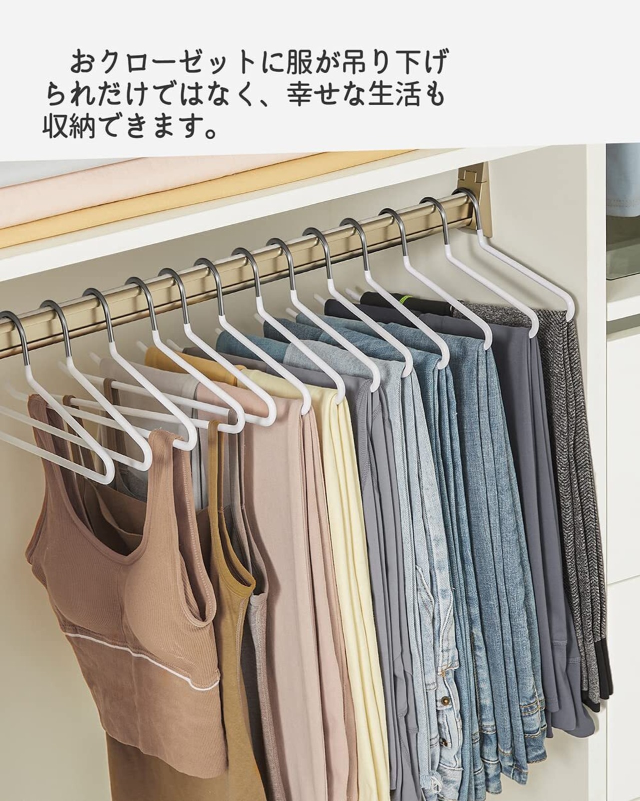【滑らない設計】表面を特殊ノンスリップコーティング加工する高品質のすべらないハンガーです。柔らかな材質で、衣類にやさしく、衣服の滑りが回避されます