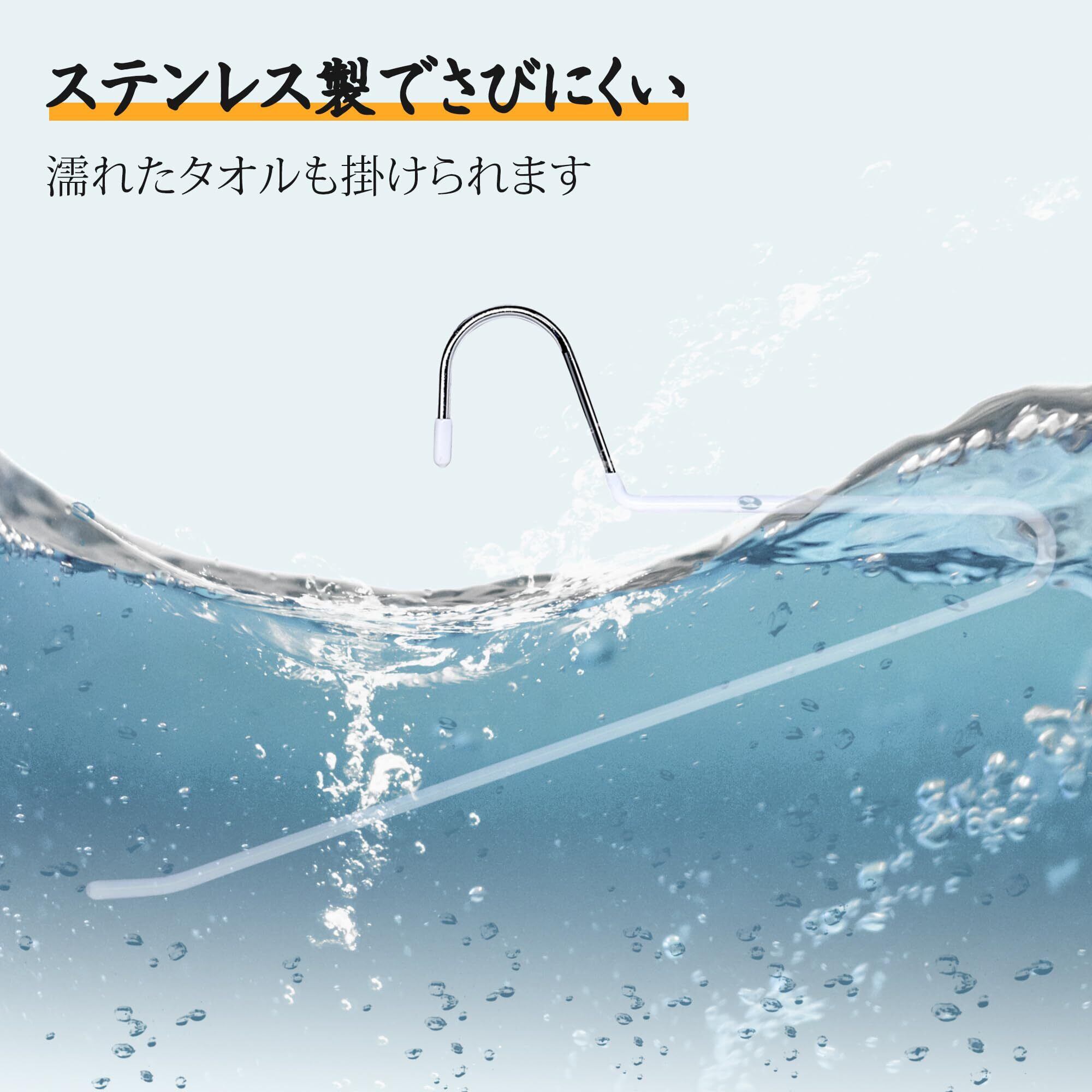 【滑らない】PVC特殊コーティングのプラスチック素材を使用しているため、滑りにくく、滑り落ちやすい衣類もしっかりと掛けられます。また、上向きのリアデザインにより、衣類のずれ落ちを防ぎます。さらに、フック部分にラバーキャップが付いているため、衣類や指が引っかかる心配がありません