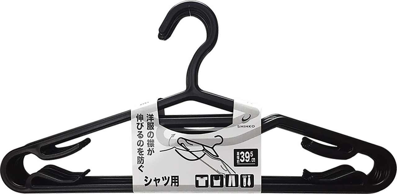 シンコハンガー(Shinkohanger) 超スリムハンガー リバースシャツハンガー10本セット ブラック かたくずれ防止 跡がつかない シンプル 省スペース 薄型 物干し 洗濯 多機能 プラスチック 衣類 洋服 収納 ワイシャツ カッターシャツ クルーネック 丸首 ポロシャツ 064887