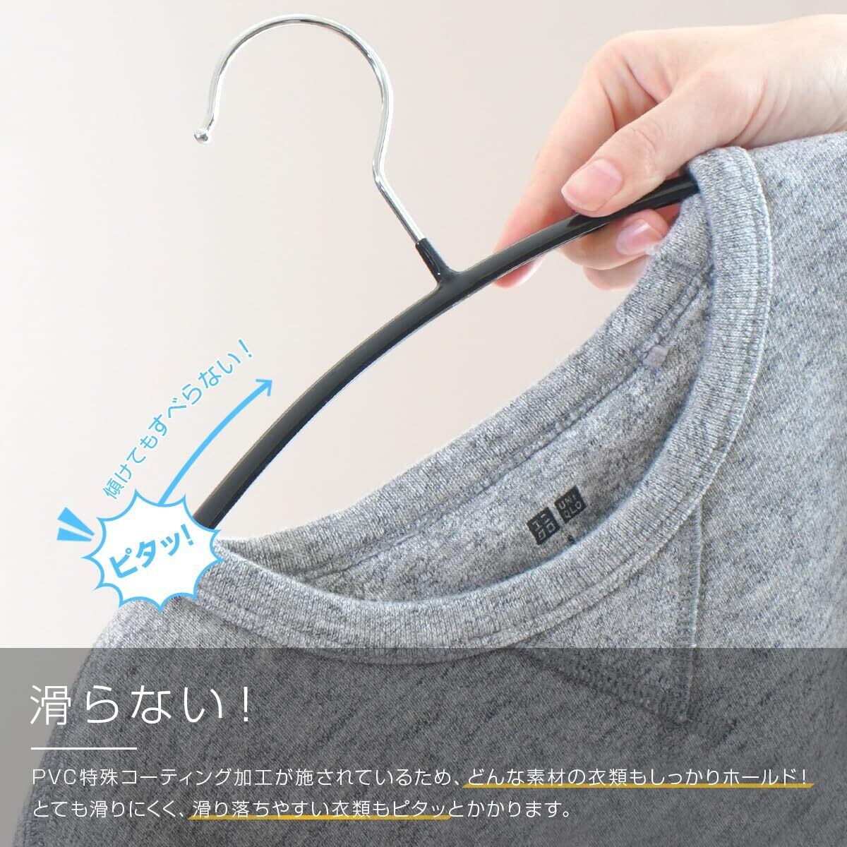 【Point.01 すべらない!】PVC特殊コーティング加工が施されているため、どんな素材の衣類もしっかりホールド! とても滑りにくく、滑り落ちやすい衣類もピタッとかかります。