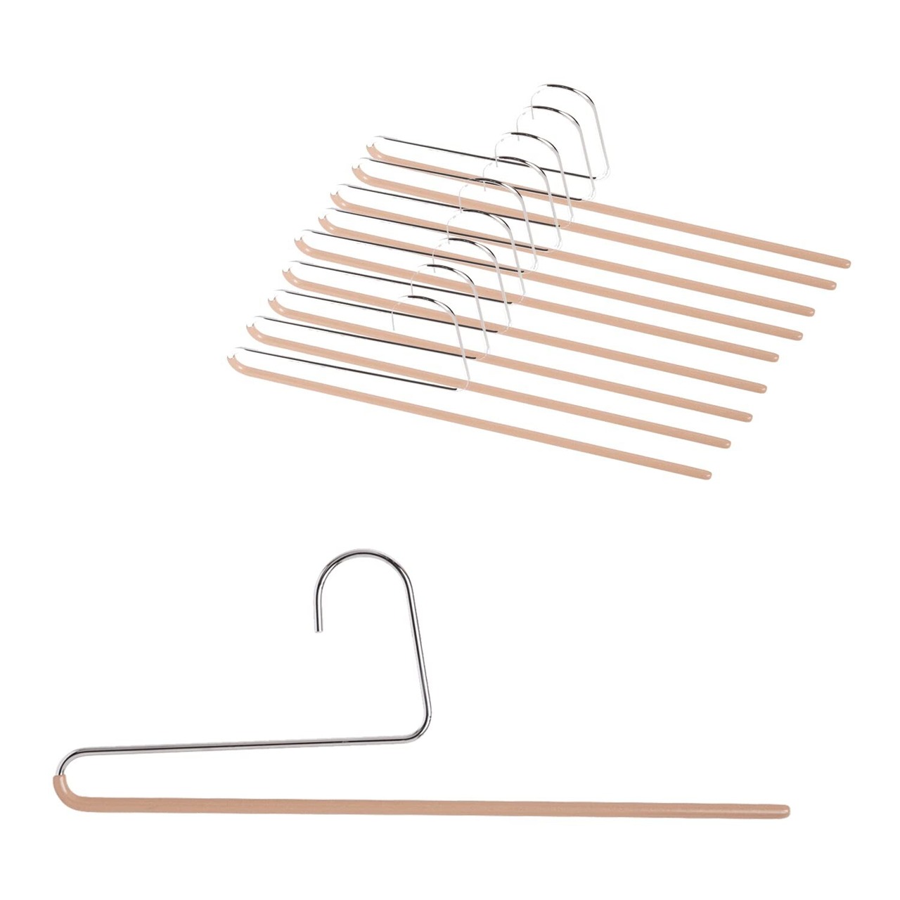 【すべらない】スチール製のハンガー本体はPVC樹脂で特殊コーティングが施され、掛けた衣類が滑り落ちません。ズボンやスカートだけでなくマフラー、スカーフ、ネクタイなどの小物を収納するのにも便利です。