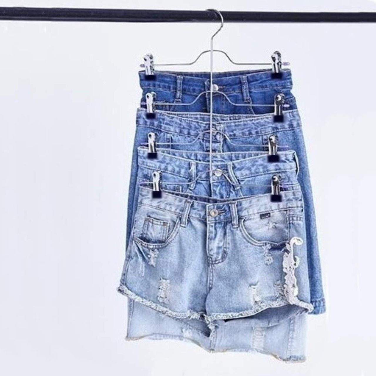 クローゼットの中やまとめきらないスカートやズボンなどの衣服をコンパクトにまとめてスッキリ収納することができる便利なズボンハンガーです。