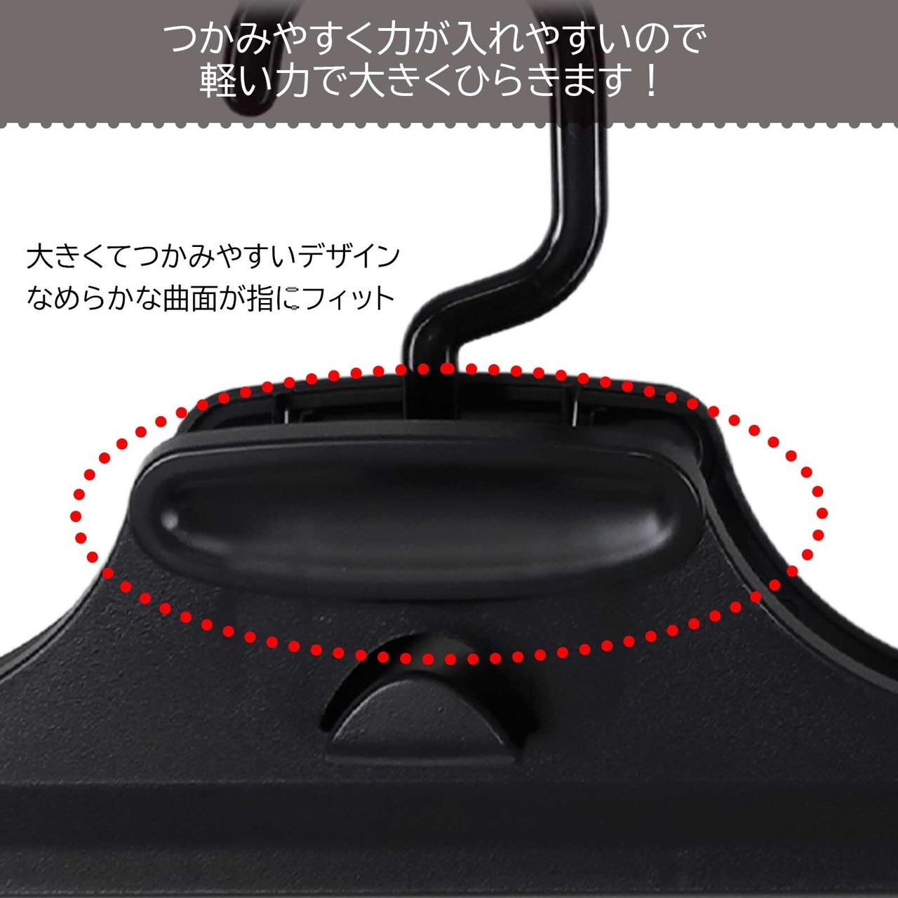 挟む部分にはゴム質樹脂のすべり止め付きで衣類をしっかりホールド。